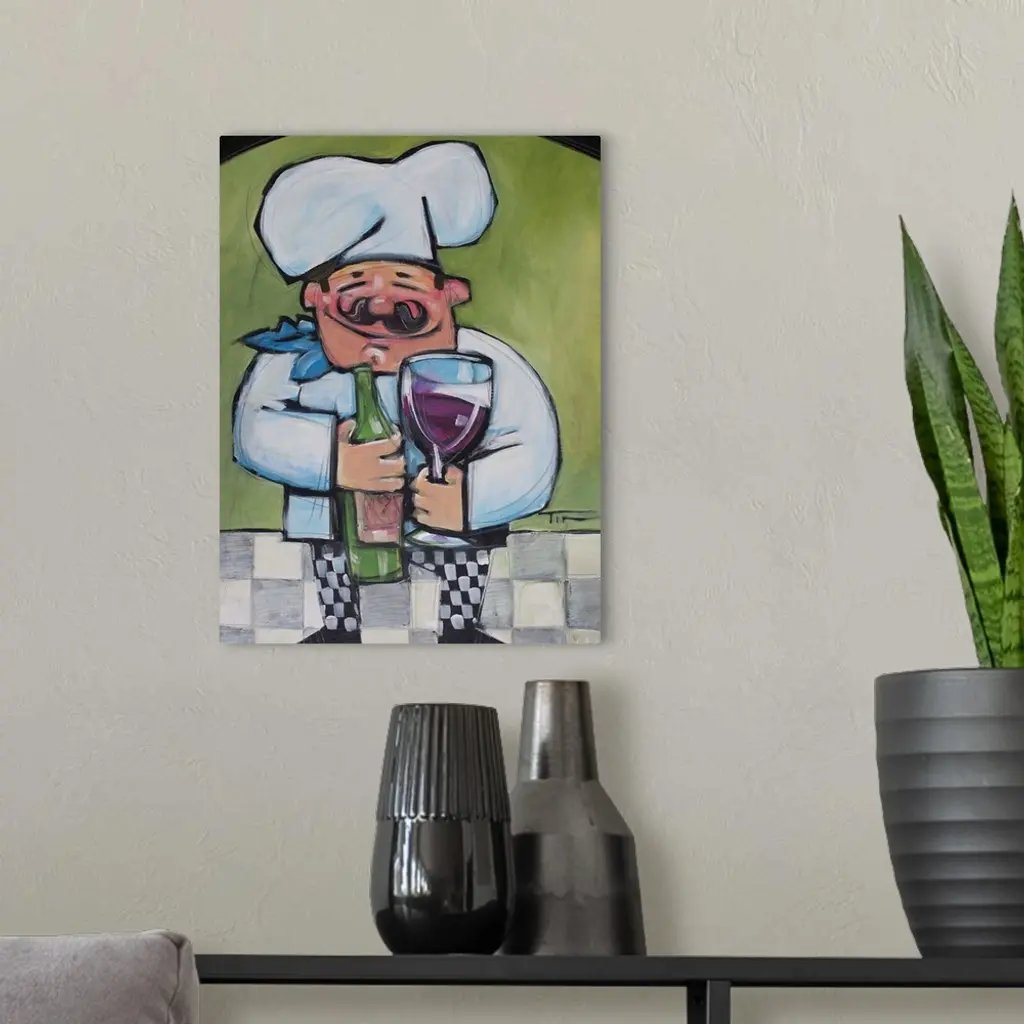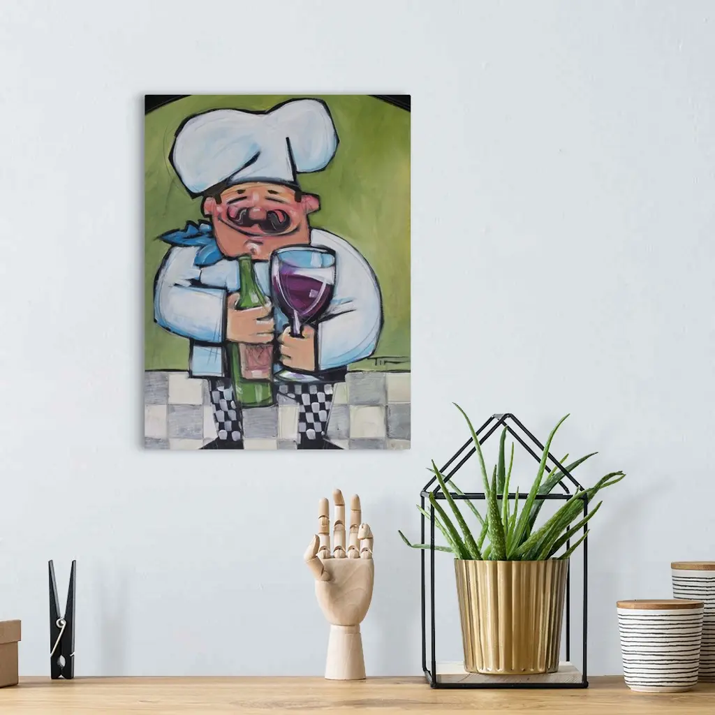 Chef With Wine And Bottle wall art for home and office decor. Discover canvas art prints, photos, mural, big canvas art and framed wall art in GreatBigCanvas.com's varied collections.