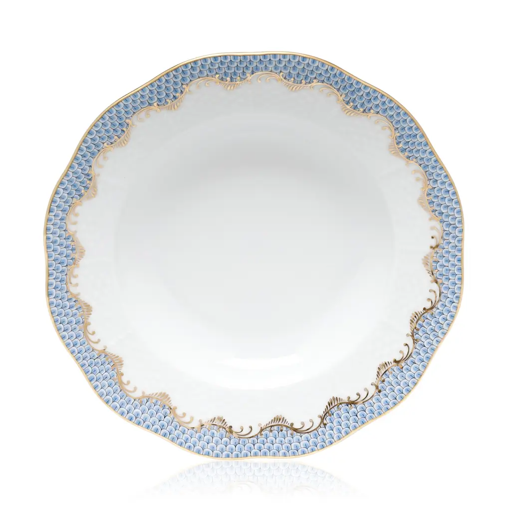In your choice of vibrant turquoise or classic white, the Mottahedeh Chelsea Feather Collection is an elegant and versatile pattern based on a historic shape. Porcelain pieces feature beautiful, scalloped edges with 22K gold feathering. Mix the plates with more highly decorated Mottahedeh dinnerware patterns to create your own unique tablescape.