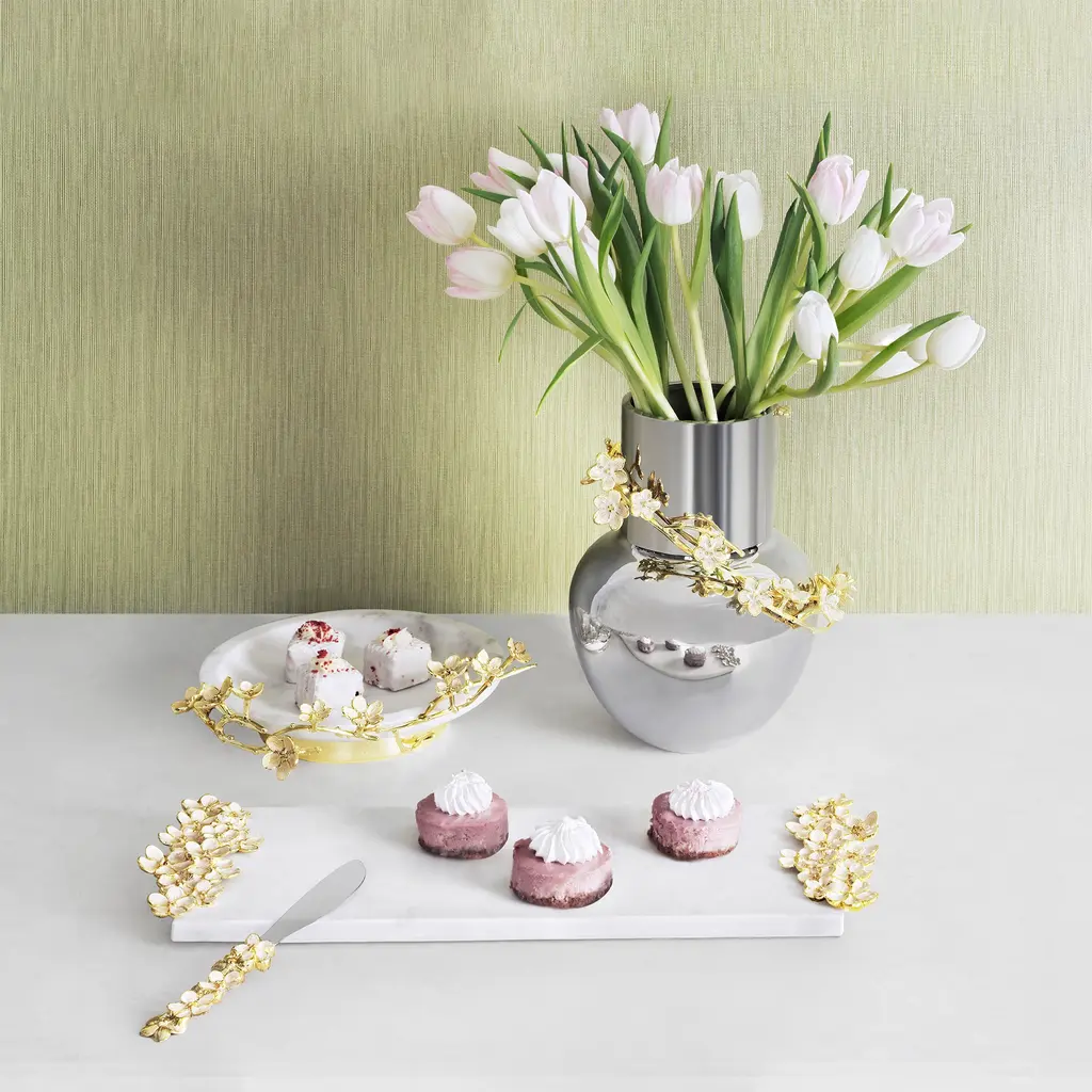 Inspired by the ephemeral beauty of its namesake Japanese flower as it blooms each spring, the Michael Aram Cherry Blossom Collection captivates with designs that combine fresh white and pink hues with rich brass tones.