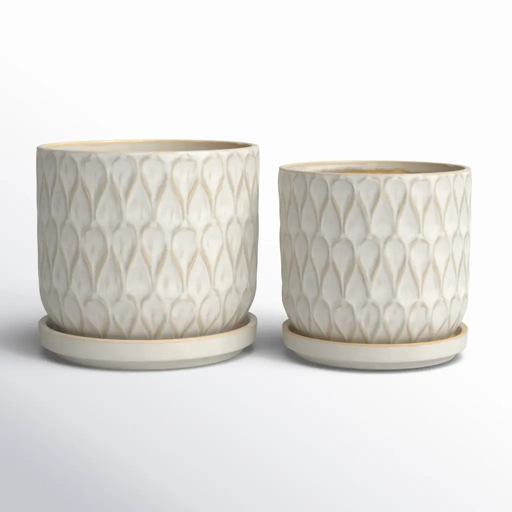 Enhance your greenery with this elegant ceramic planter duo (4.5" and 6" sizes), featuring matching stands and drainage holes. Made from premium, eco-conscious ceramic that's more durable than plastic or resin alternatives, these planters are ideal for succulents, terrariums and houseplants. Their versatile modern design complements any interior or exterior space while making a perfect gift for plant enthusiasts.