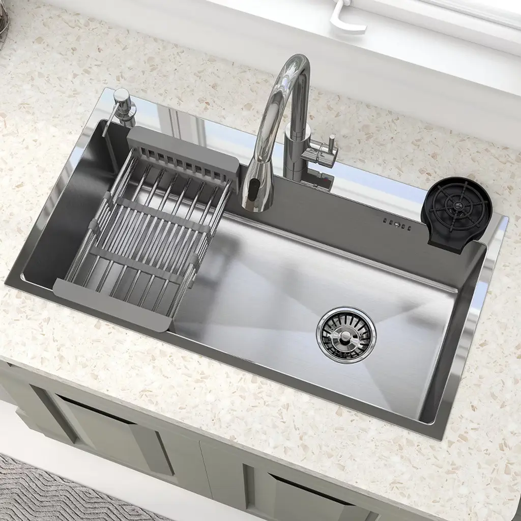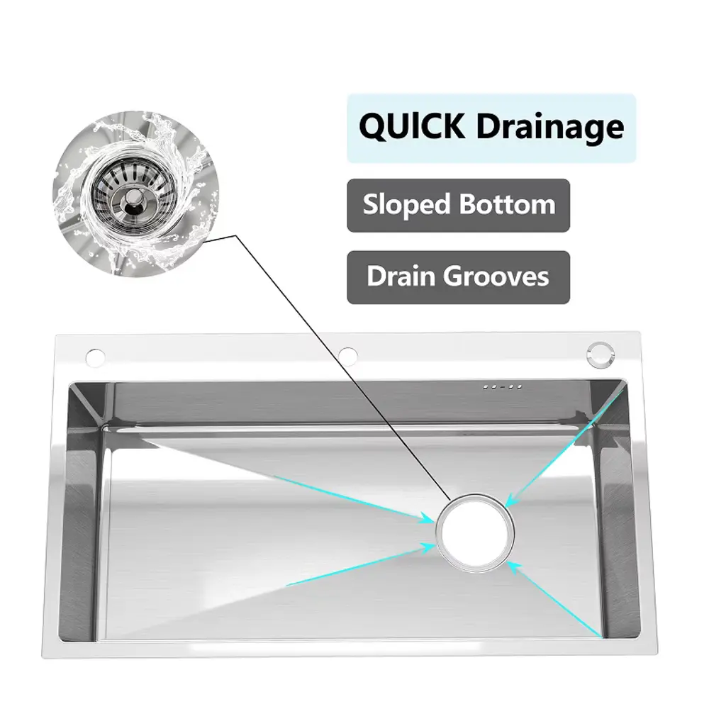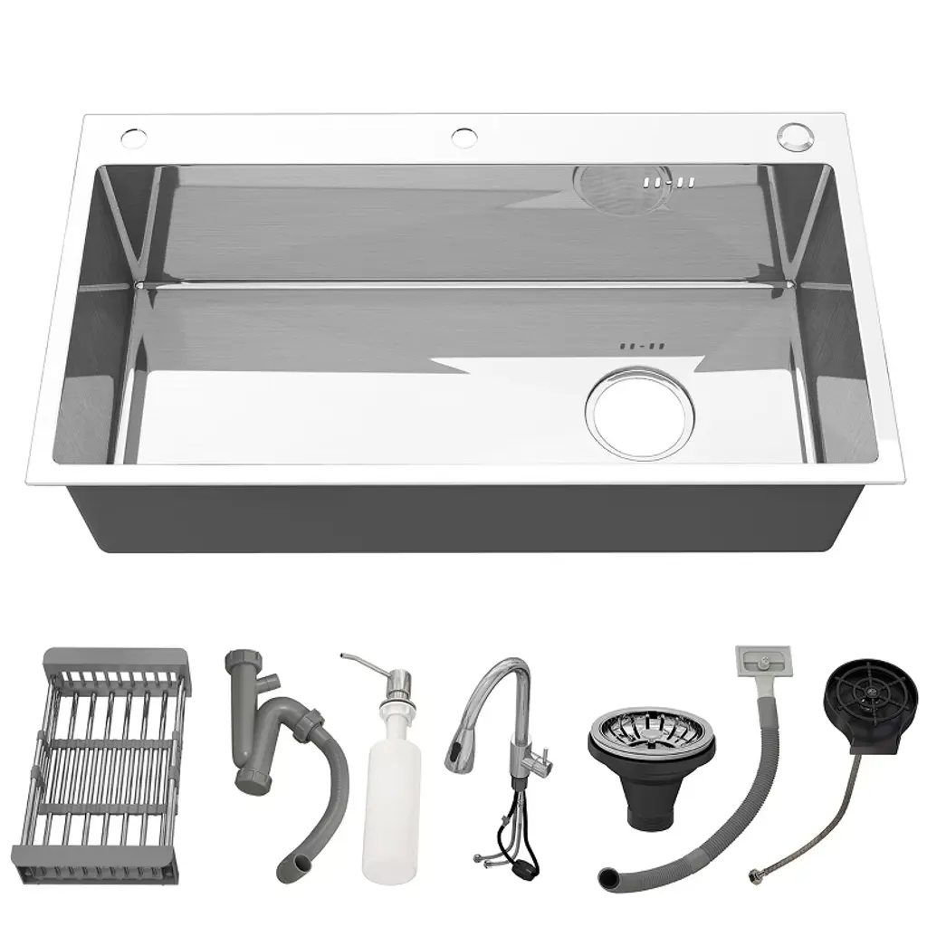 CHEVNI Silver Kitchen Sink Stainless Steel Single Bowl With Faucet Cup Washer Drop In Top Mount Crafted from premium-grade stainless steel, this kitchen sink combines durability, functionality, and modern aesthetics, making it an ideal addition to any contemporary kitchen. The sleek, corrosion-resistant surface not only enhances the sink's longevity but also ensures easy maintenance and a timeless appearance that complements various kitchen styles. Specification -Material: Stainless Steel -Color: Sliver Package Includes:-1x Kitchen Sink (Include Full Kitchen Sink Kit)