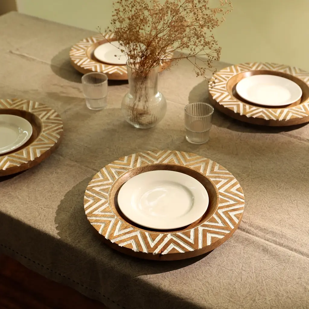 Introducing our Wooden Charger Plates the perfect blend of elegance, sustainability, and functionality. Crafted with care from high-quality, eco-friendly wood, these charger plates are designed to elevate your dining experience while being kind to the planet. Each plate is meticulously handcrafted, showcasing the natural beauty of wood grains, adding a rustic charm to any table setting