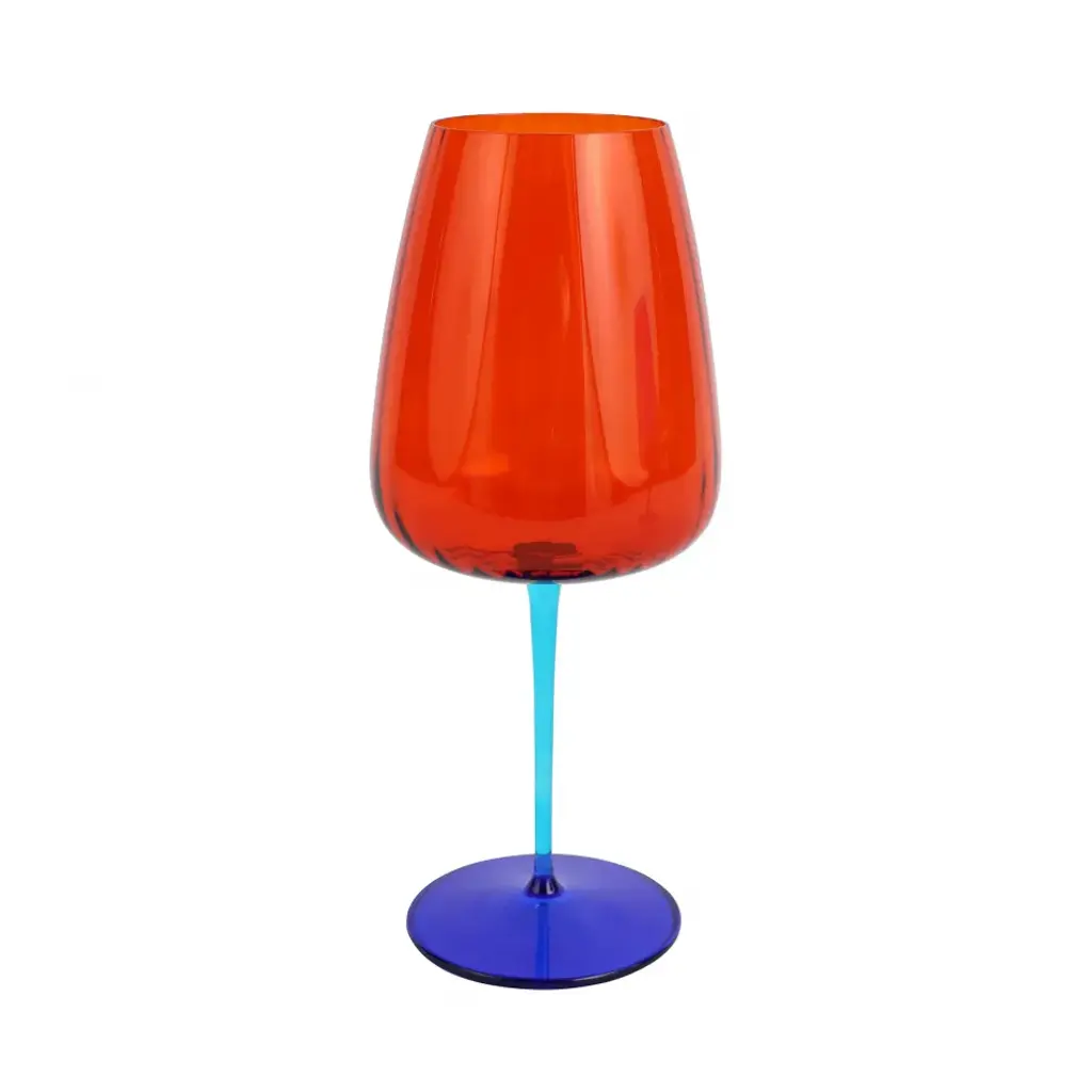 Dynamic streaks of blue adorn the mouthblown Chiara Orange Wine Glass. Whether you go for a single color table or a mix of the different Chiara hues, the confident ribbons of color create a unique and lively table. Since 1983, Vietri has specialized exclusively in Italian handcrafted ceramics, stainless and pewter flatware, mouth blown glassware, lamps, urns and planters. Families of artisans with 3 or 4 generations of history create these special pieces using centuries-old techniques. The subtle color from a paintbrush and the curving stroke of the artist's hand are never repeated in quite the same way, making each piece truly unique.
