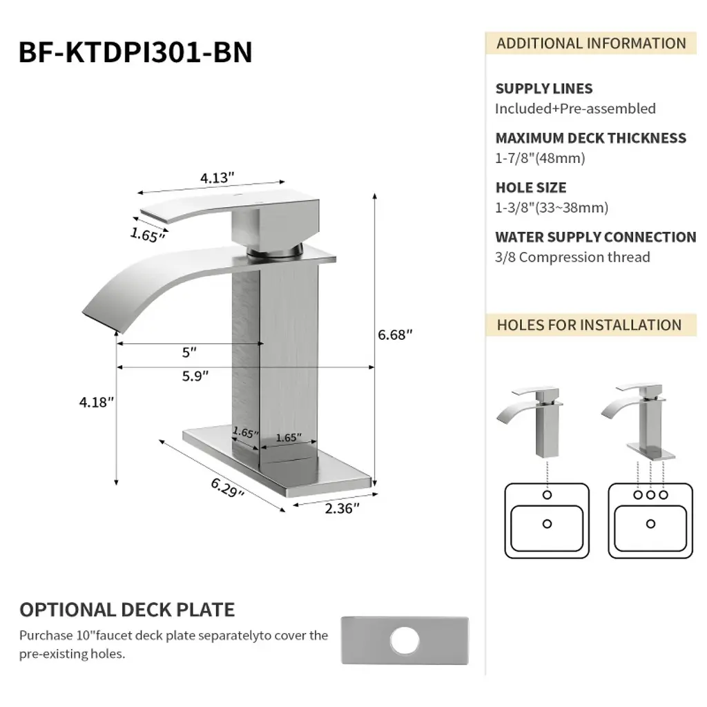 ChicFurnit Bathroom Sink Faucet combines modern design with practicality, featuring a sleek single handle for effortless water control. Crafted from durable stainless steel 304, it resists corrosion, ensuring long term performance. The clean design complements contemporary bathrooms, while its easy installation and precision flow adjustment provide a seamless user experience. Ideal for residential bathrooms, this faucet is a stylish and reliable choice for everyday use.