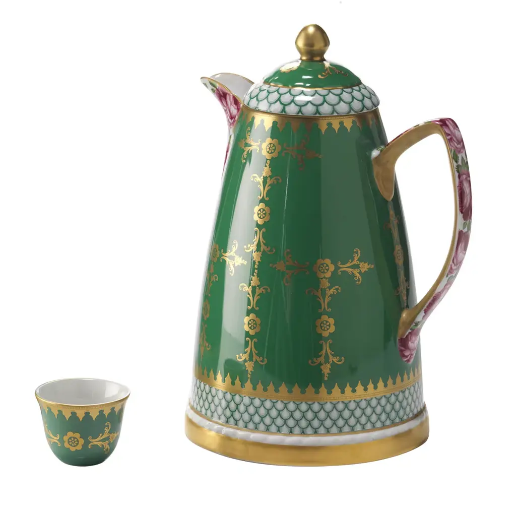 Chinese Bouquet Blue Coffee Pot With Rose 36 Oz 8.5 In H