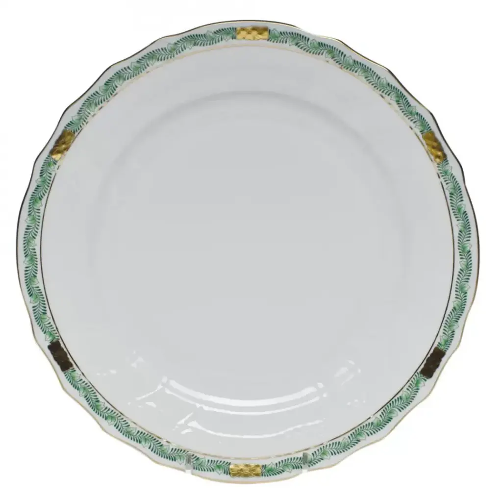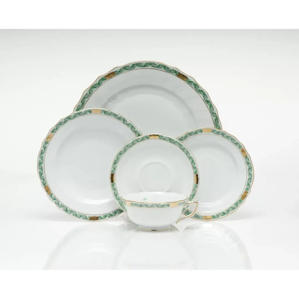 Like a pretty silk ribbon used to tie a bridal bouquet, the garland usually plays a supporting role by embellishing the peony motif of the Chinese Bouquet pattern. Here it becomes the principal source of beauty by draping the edges of its porcelain host with stylized vines and gold rosettes. Hand painted in Hungary. Now the biggest porcelain manufactory in Europe, Herend was founded in 1826 to produce earthenware in the small Hungarian village for which it was named. At the time, Hungary was flooded with low-cost pottery, but in 1839, Mor Fischer became the Manufactory’s new owner and he decided to focus on producing dinnerware replacement pieces for Europe’s royal families to complement their valuable porcelain patterns from Germany and the Far East. As his client base grew, Fischer commissioned his artists to begin designing dinnerware patterns of their own. Queen Victoria’s 1851 purchase of a large set for Windsor Castle was a milestone, setting the stage for aristocrats throughout Europe to clamor for Herend in their estates. In the 1850s, Herend added meticulously-crafted figurines to its creations. Herend’s trademark fishnet pattern, which is widely recognized and prized as Herend’s signature design, started in 1858 when an artist who was intrigued with a Chinese plate’s fish scale design painted it onto a rooster figurine to imitate feathers.