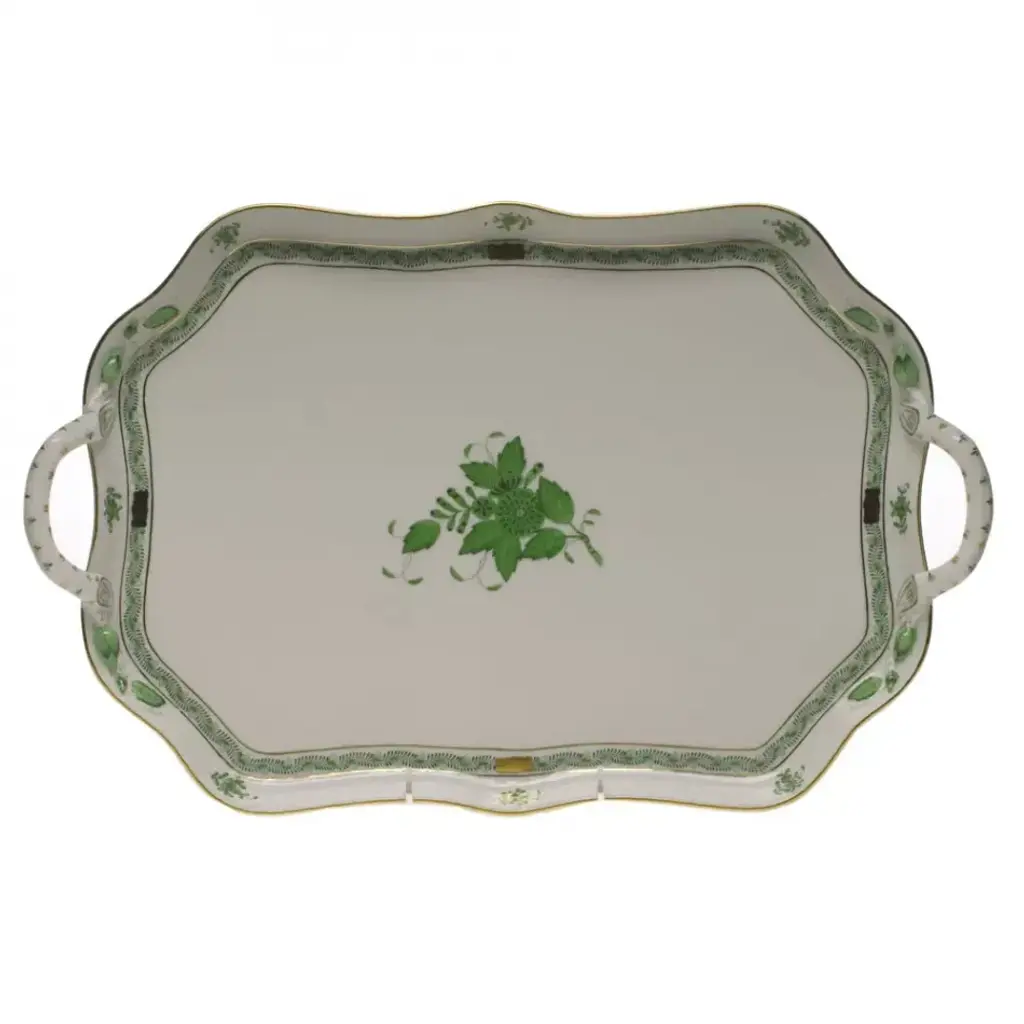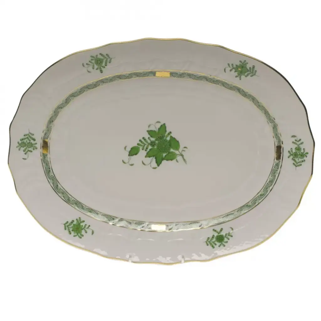 Chinese Bouquet Green Platter 17 In L X 12.5 In W