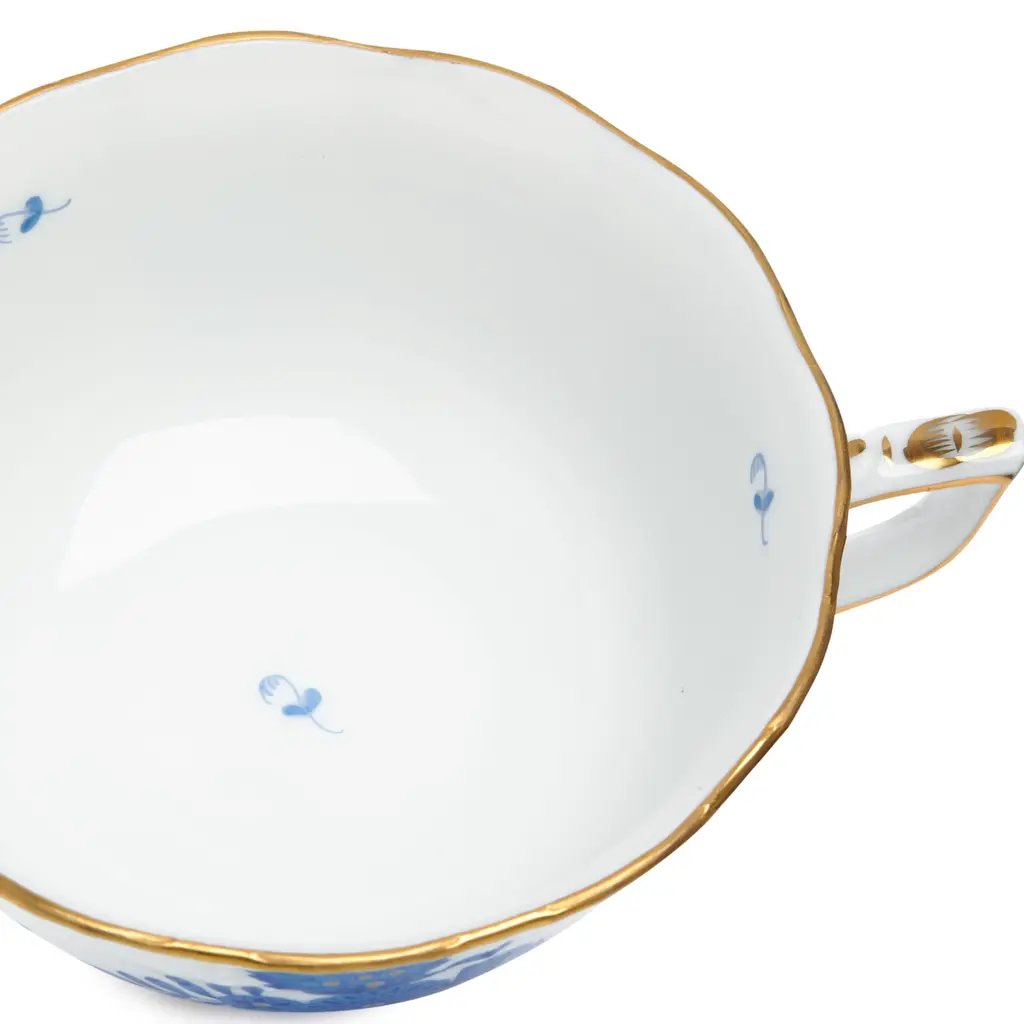 Herend's alluring platinum-detailed Chinese Bouquet dinnerware features stylized peony and garland designs that date back to 1930, updated in a striking turquoise.