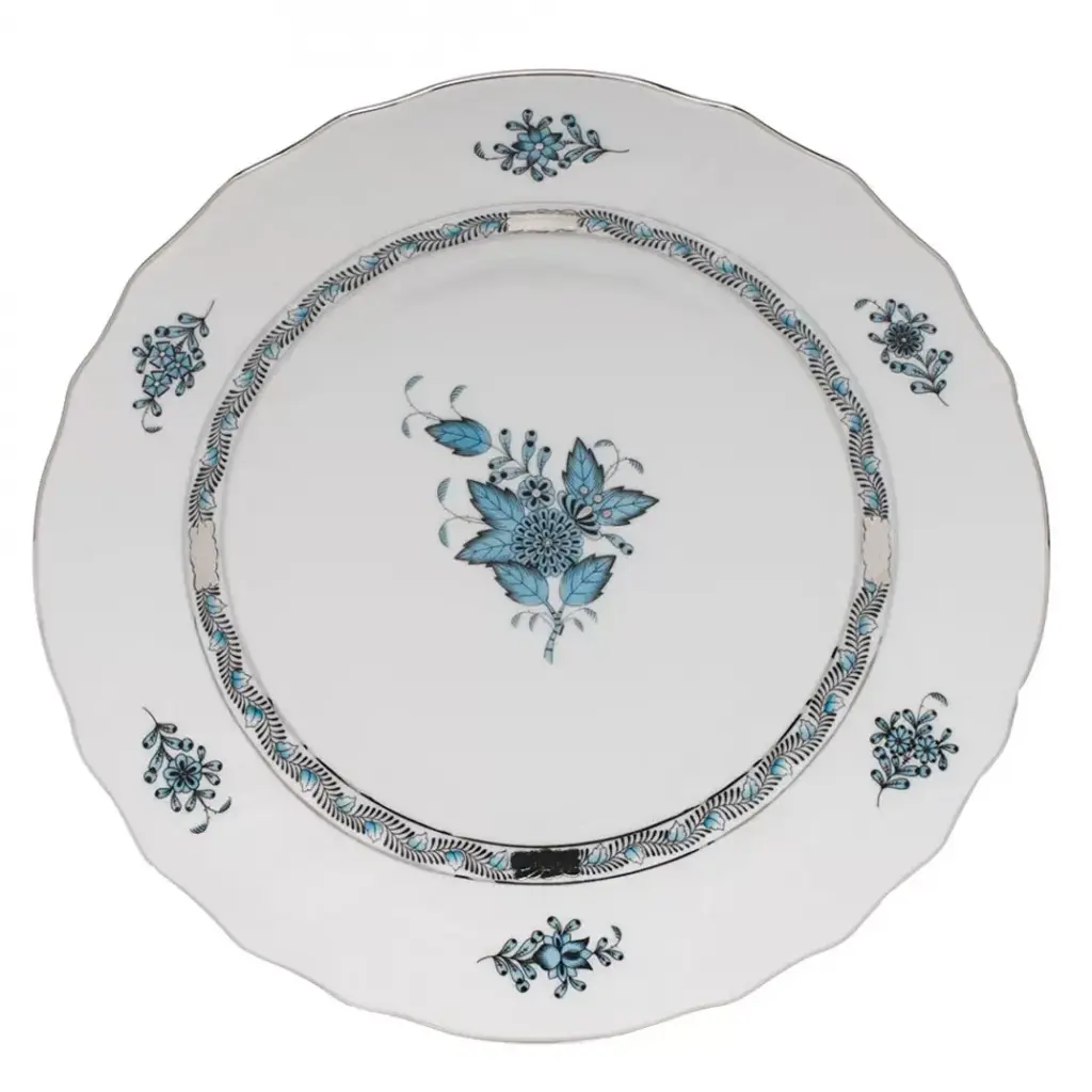 Chinese Bouquet Turquoise & Platinum Tea Saucer 6 In D