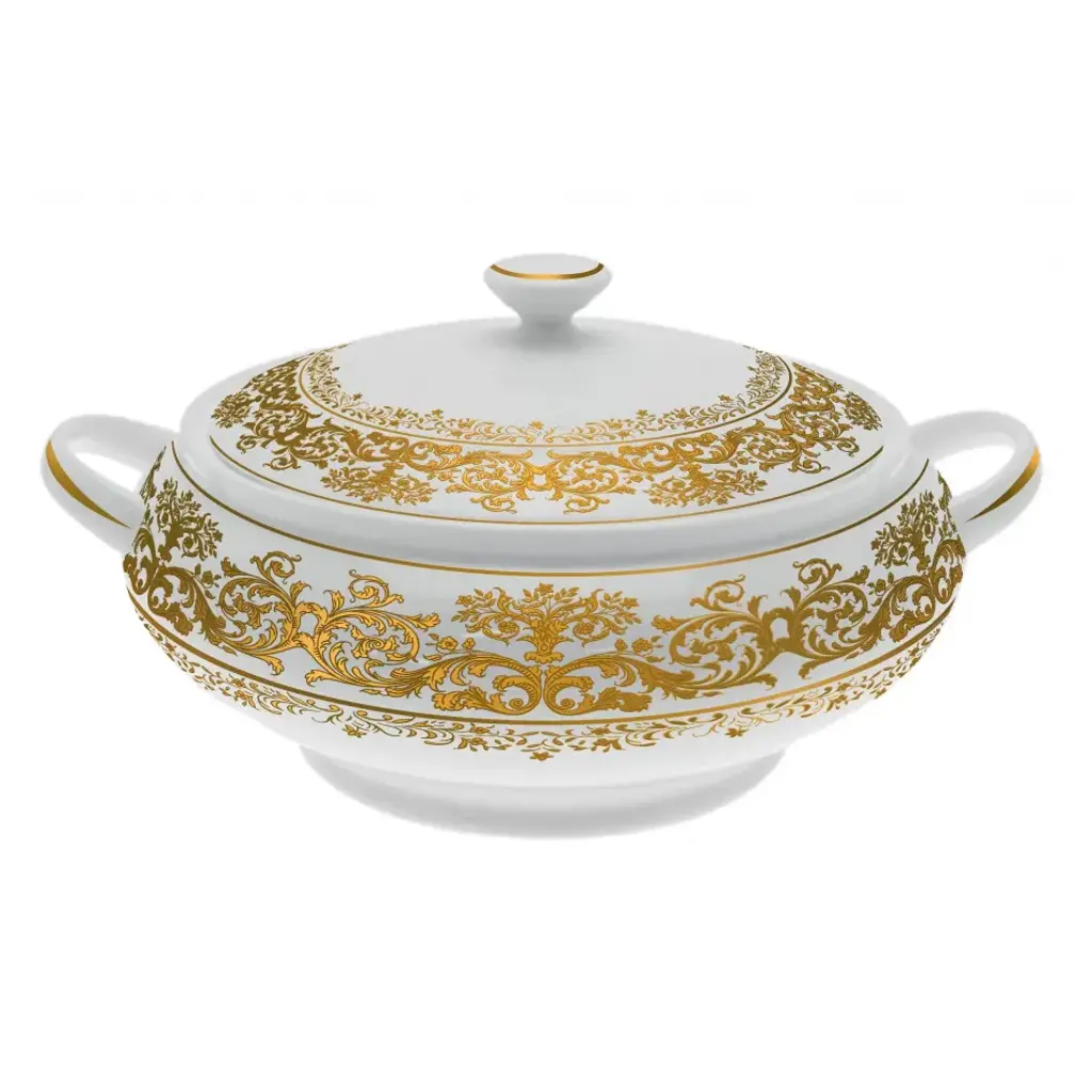 The octagonal tureen is a magnificient vessel for serving soup or as a statement as a centerpiece; both functional and decorative. A favorite with brides, Mottahedeh specializes in luxurious patterns and unique, elegant shapes that are reproduced from china found in museums and historical societies. The patterns feature complex and vibrant colors, and hand-painted gold decoration. The pieces are surprisingly fresh and timely, and look wonderful in both contemporary and traditional dining rooms.