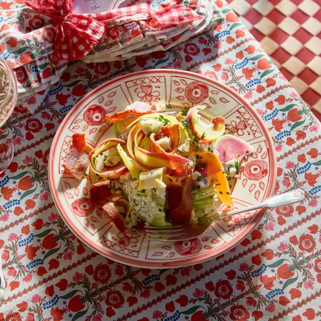 Chinoiserie reverie. Hand-painted with charming red flowers on 100% earthenware, these plates layer beautifully with patterned or solid sets. For holidays and every day.
