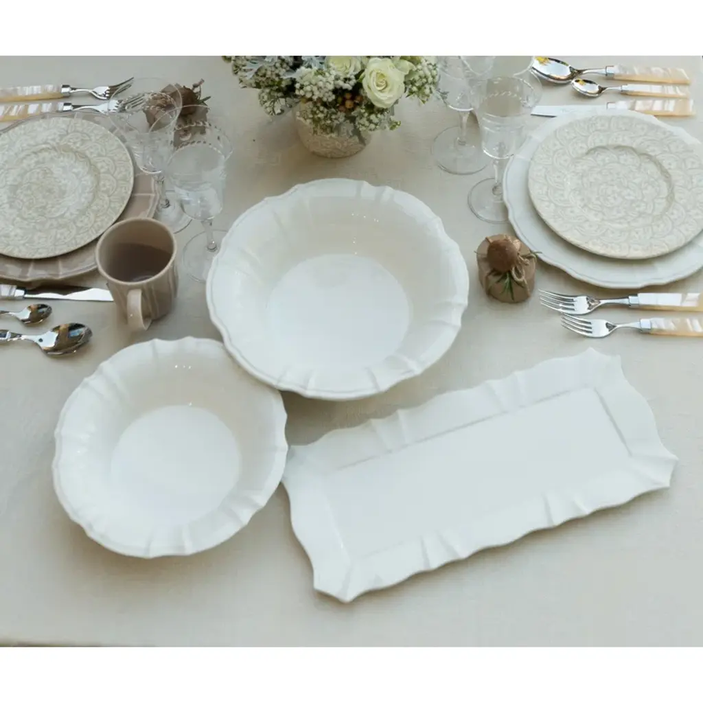 A modern take on classical scalloped shapes of European ceramics. Crafted of high temperature fired earthenware for durability and hand finished and glazed in Portugal, Chloe combines the best of quintessential design, natural resources and modern technology. Chloe Dinnerware comes in complete sets and piece sets, with matching platters and accessories to round out your table.