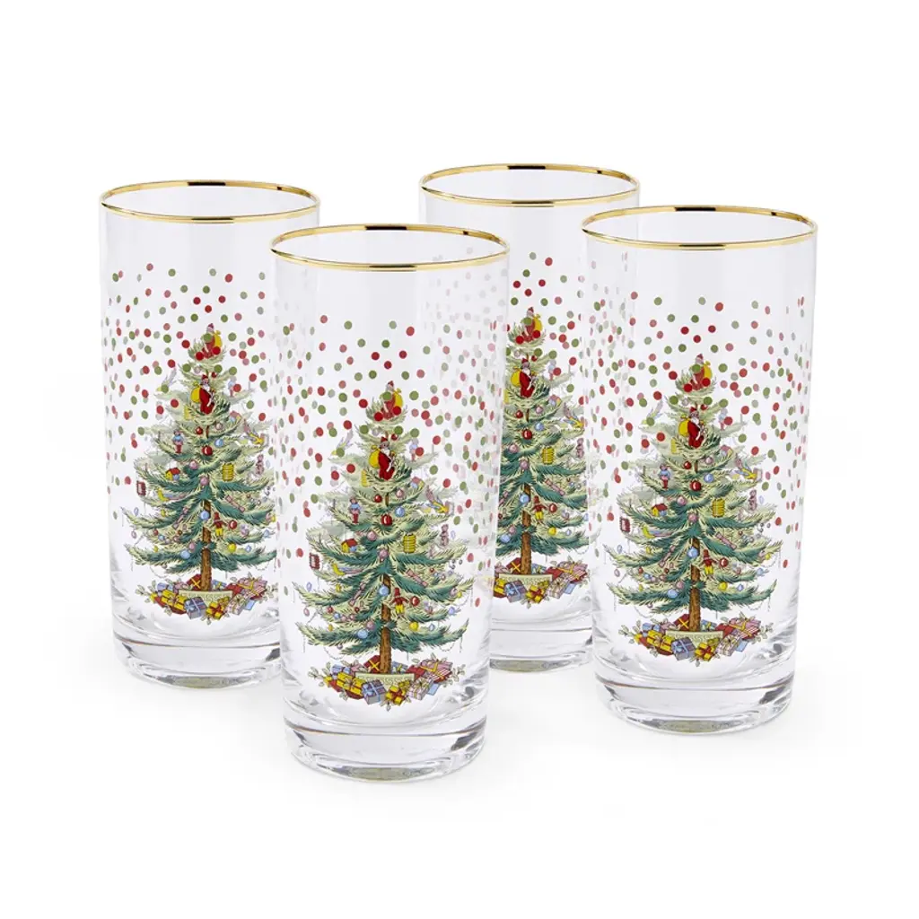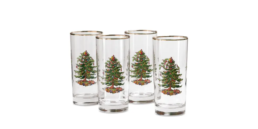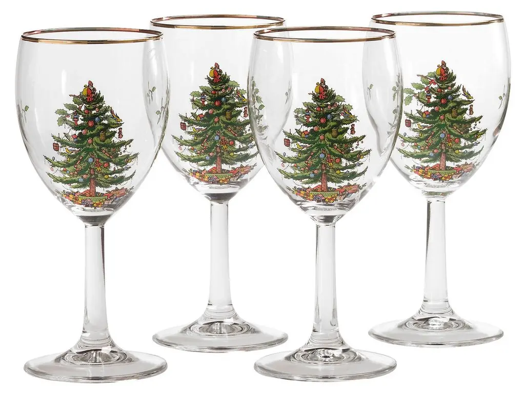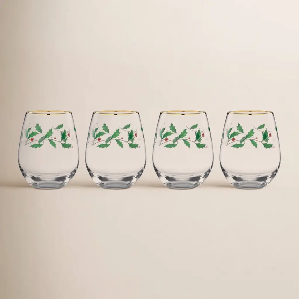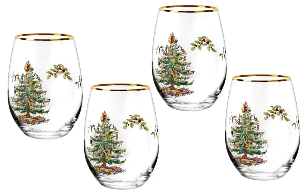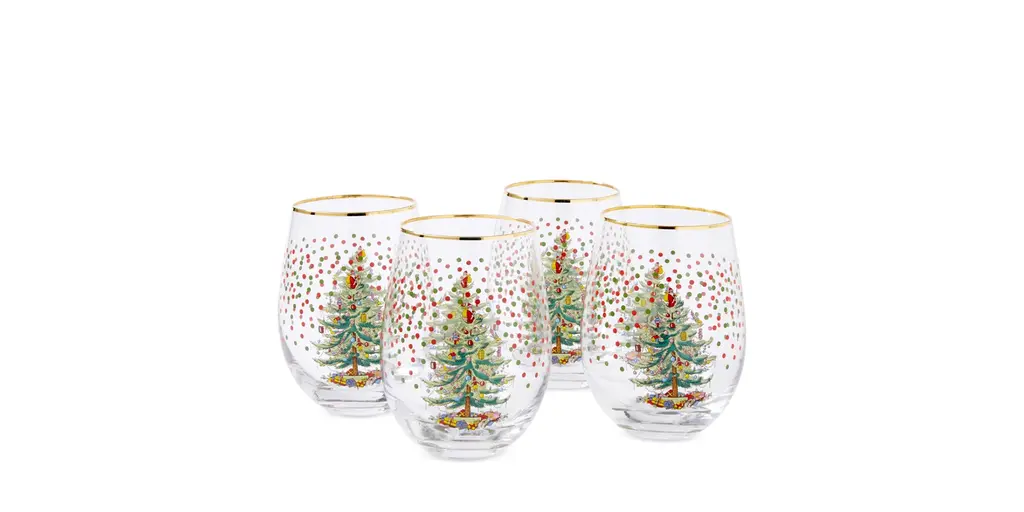 Christmas Tree Stemless Wine Glasses, Set Of 4