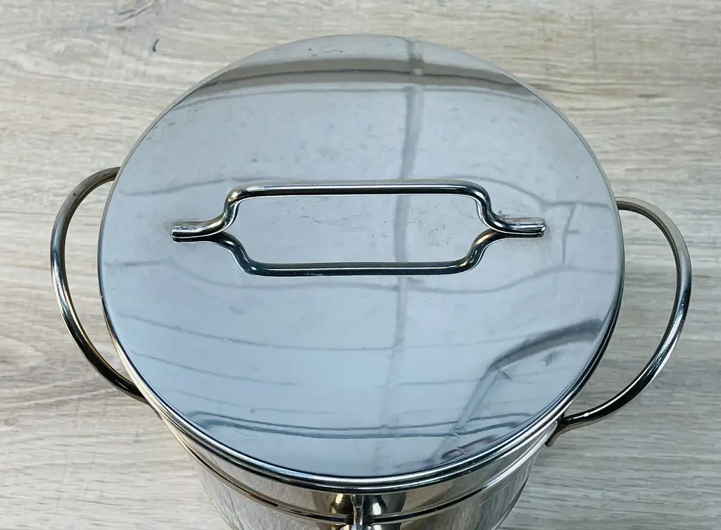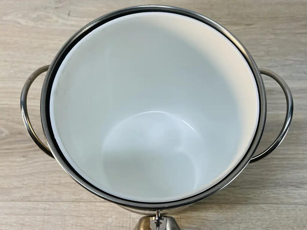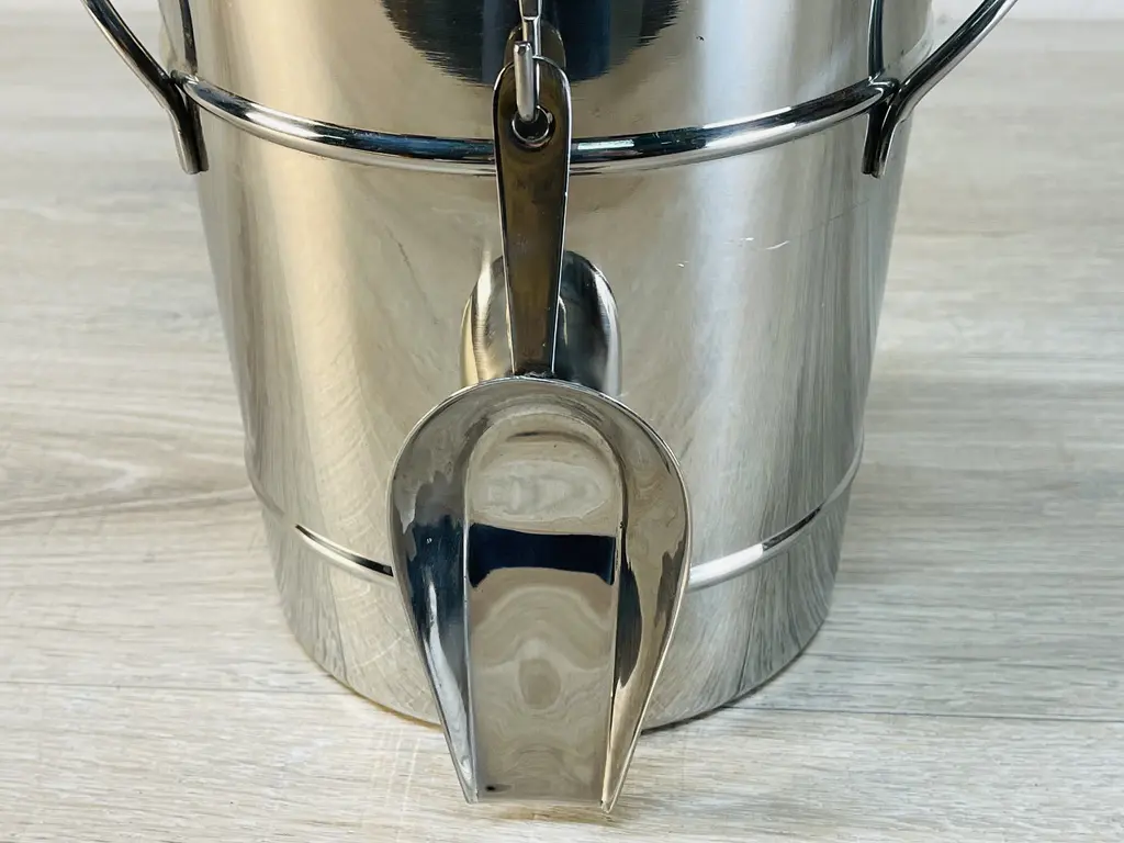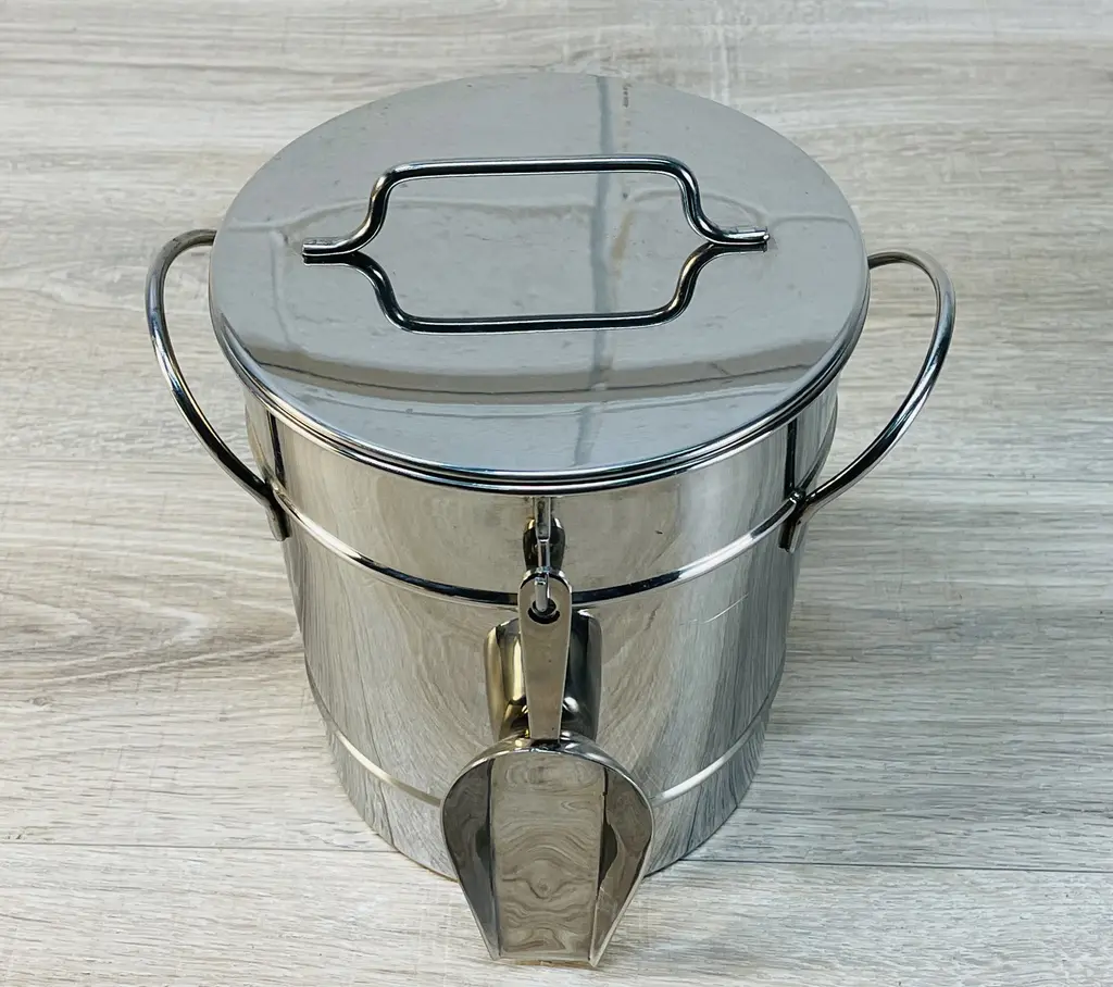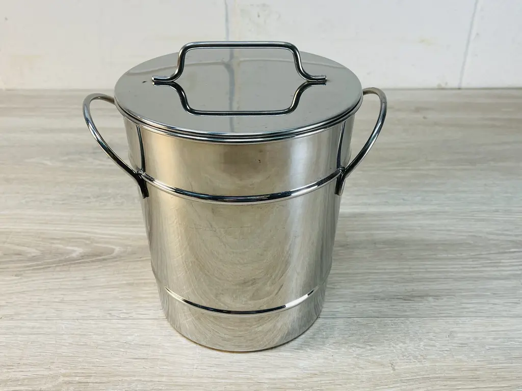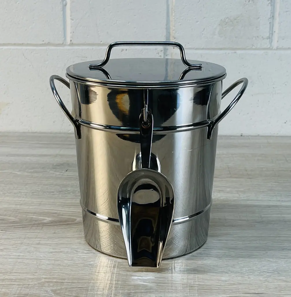 Vintage all chrome round ice bucket with matching scoop. Comes with plastic liner. No marks.
