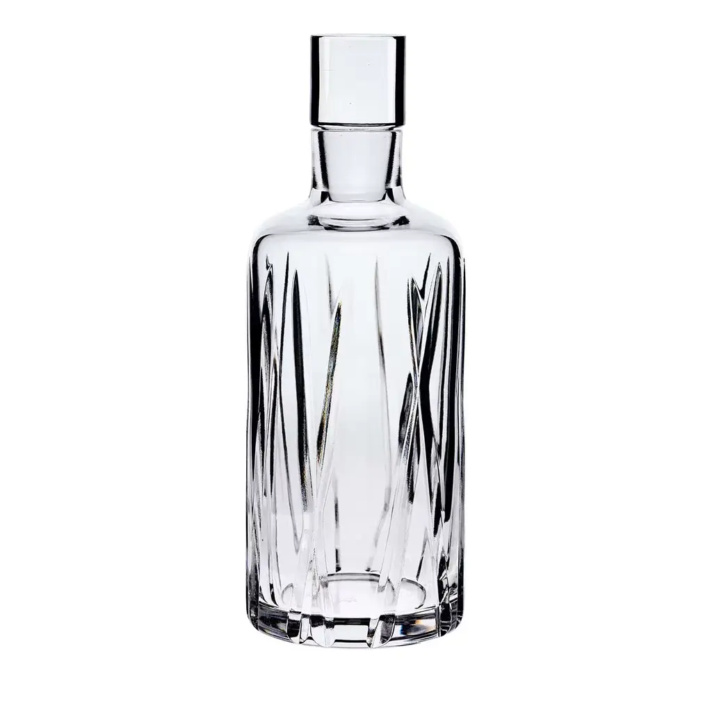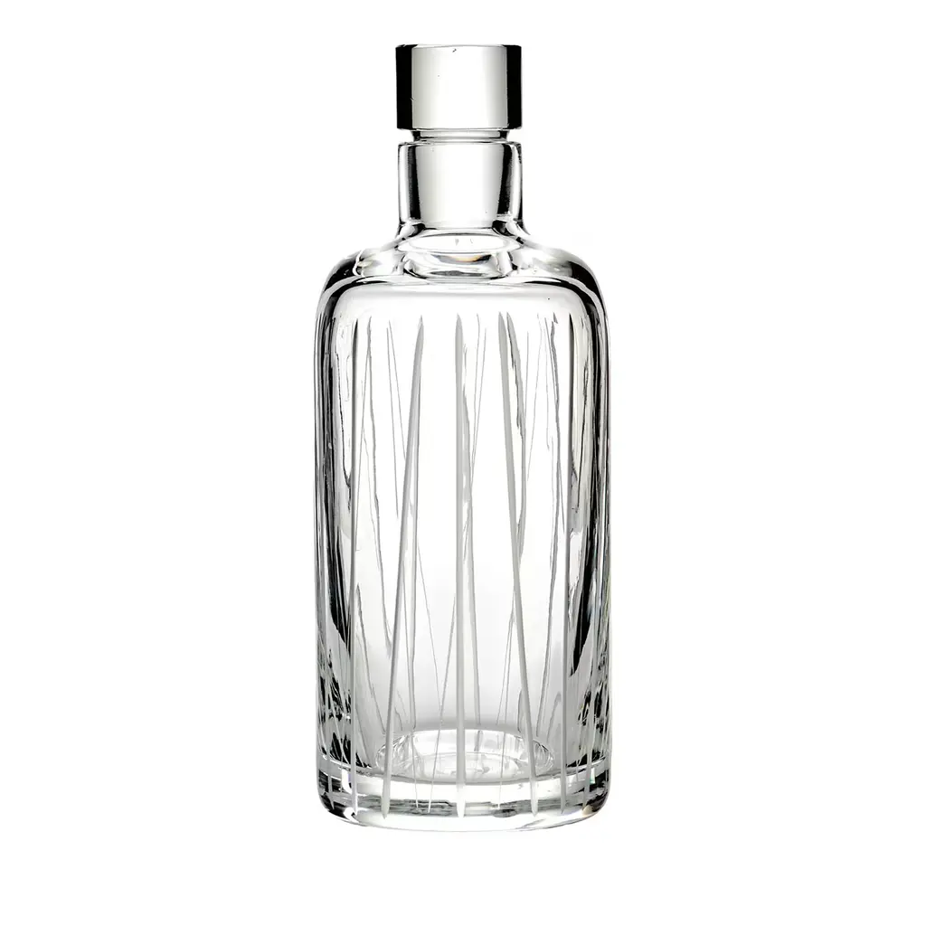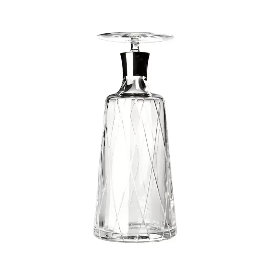 Part of the Cibi Collection designed by Cini Boeri in 1973, this charming decanter is a precious and elegant addition to both a classic and a modern home, where it can be displayed on a bar cabinet, a sideboard, or a dining table. Its linear structure tapers to create the small mouth with topper, both crafted by hand of mouth-blown crystal, providing an elegant complement to the glassware pieces of the same series. This decanter holds 74 cl of liquid.