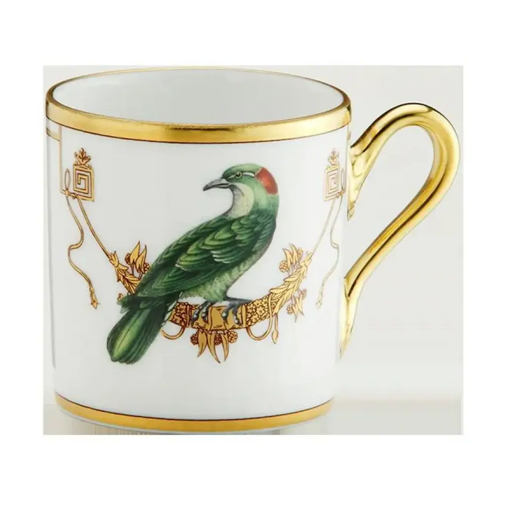 An alternative to the cup and saucer, the Cincinnati mug has a tall slim shape and a twisted handle design. A favorite with brides, Mottahedeh specializes in luxurious patterns and unique, elegant shapes that are reproduced from china found in museums and historical societies. The patterns feature complex and vibrant colors, and hand-painted gold decoration. The pieces are surprisingly fresh and timely, and look wonderful in both contemporary and traditional dining rooms.