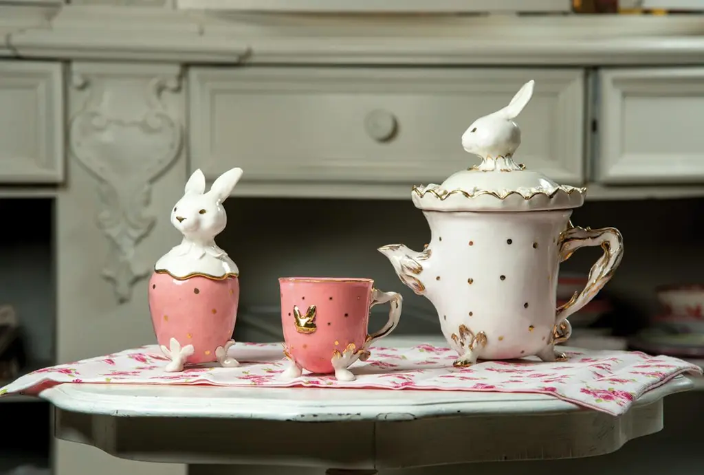 Our artisan's pieces are a dream come true, as in Cinderella's fairytail.This ceramic piece is completely hand-crafted and painted with love and care. A set is consisting of a milk jug and its cover. Choose between different shapes, colours, and covers!