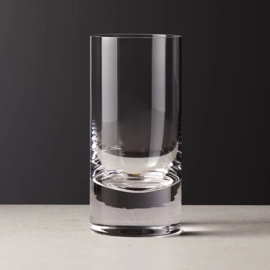 Handmade with thin walls and a thick, heavy sham. Glass holds all types of pours with substantial heft. CB2 exclusive.