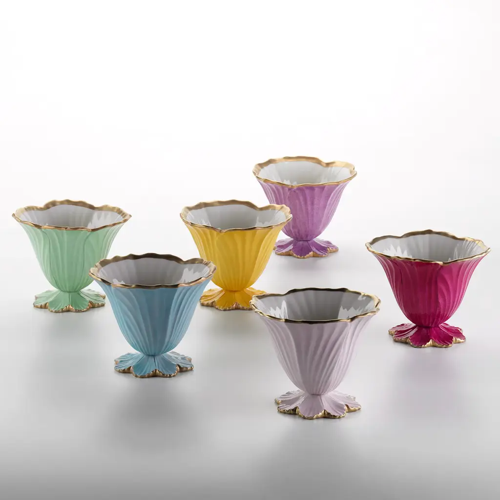 The reference to nature and its graceful size makes this extremely versatile object suitable for functional choreography at your table or as a welcome gift for special occasions that will give style and elegance to any room in the house. Each color, chosen with care, is expertly hand-painted by our master craftsmen and edged in 24-carat gold.