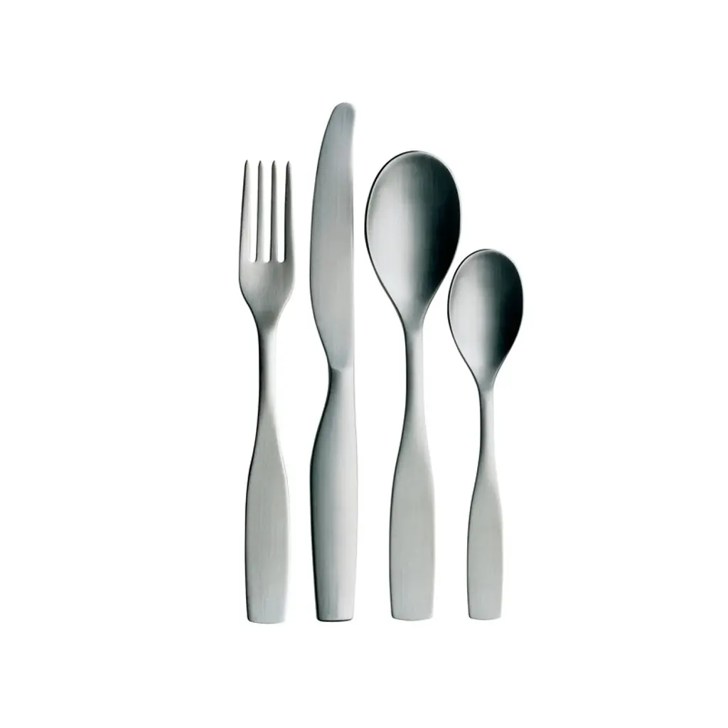 Iittala's Citterio 98 cutlery set is ideal for any table setting. The bold, distinctive design and generous proportions of the Citterio 98 collection have earned it the status of a modern classic. Drawing influence from traditional restaurant cutlery, the matt brushed stainless steel design feels equally at home in a formal dinner setting and a relaxed get-together with friends. The simplistic design of the cutlery also goes well together with the Collective Tools range by Iittala. The Citterio 98 range was designed by Antonio Citterio and Glen Oliver Löw. This 16-piece cutlery set includes 4 dinner forks, 4 dinner knives, 4 dinner spoons and 4 coffee spoons.
