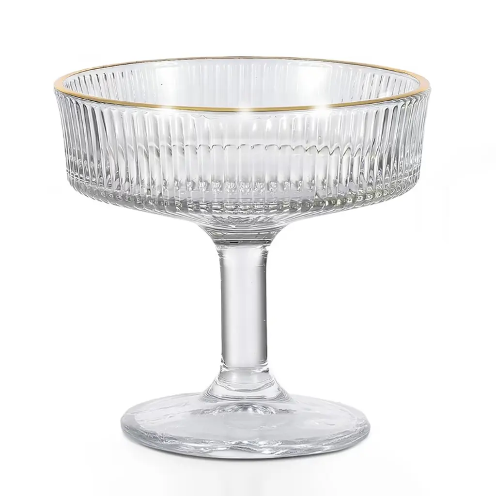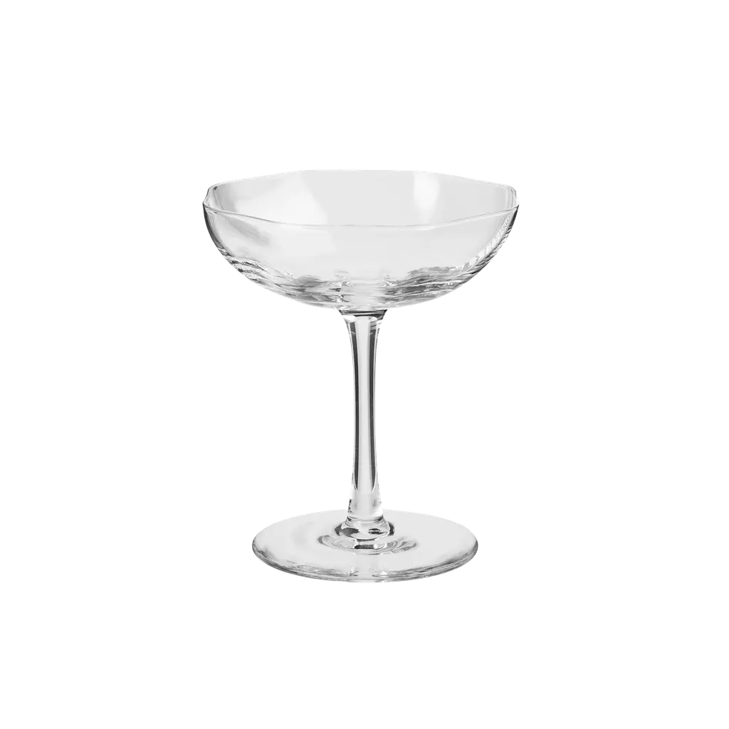 A chic textured glass set made from soda-lime glass for durability and clarity. The versatile functional coupe shape adds sass to martinis, champagne, and craft cocktails