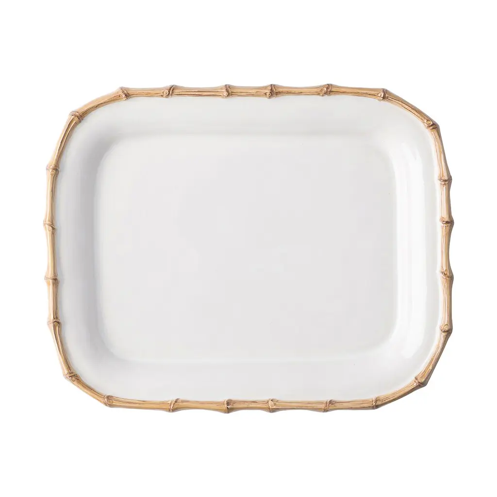 From our Bamboo Collection - Keep this platter in your repertoire and your dinner parties and festive fetes will take on a twist of the beau monde. The bamboo trim is at once rustic, chic and polished - perfect for serving any cuisine. Based in Connecticut, Juliska is committed to bringing elegant European design into our modern homes. Since its founding in 2001, when David and Capucine Gooding began by working with artisans outside of Prague to reproduce antique Bohemian glass pieces, every piece from Juliska has shared a rich heritage spanning six centuries of European design. Juliska's creations are timeless, romantic and effortlessly chic.