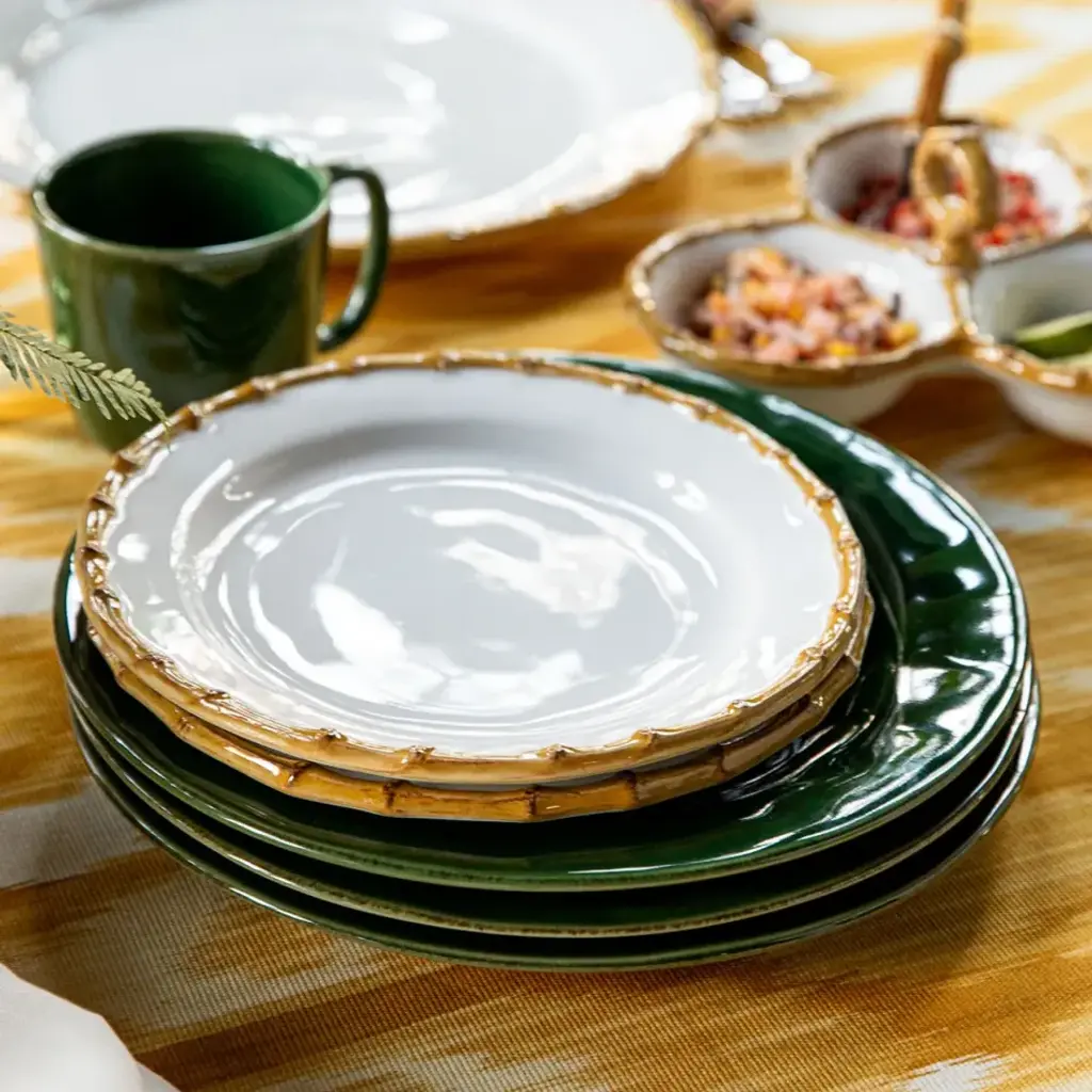 From our Bamboo Collection - This companion plate adds an extra lovely layer to table settings. Our classic bamboo rim pays homage to tradition while a salad served with edible petals adds a modern twist Based in Connecticut, Juliska is committed to bringing elegant European design into our modern homes. Since its founding in 2001, when David and Capucine Gooding began by working with artisans outside of Prague to reproduce antique Bohemian glass pieces, every piece from Juliska has shared a rich heritage spanning six centuries of European design. Juliska's creations are timeless, romantic and effortlessly chic.