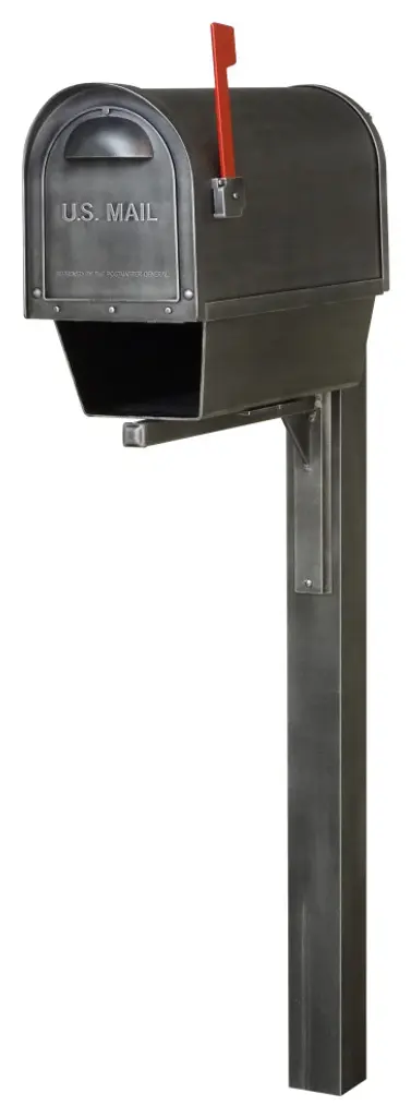 The traditional shape of our Classic curbside mailbox is the only thing this mailbox has in common with a typical curbside mailbox. The solid cast aluminum construction, with thicker walls than our competitors, provides added strength, and the powder coated finish will maintain a lifetime of beauty. Newspaper tube included.The traditional square mailbox post design with a decorative upgrade! Sturdy with clean lines theWellington post fits perfectly with any style of home architecture. Quick and easy direct burial will make assembly simple. No wood post needed! This is not a sleeve like many other companies use. This is a single 3" x 3" aluminum sturdy bodied post capped with a pyramid topper. The contemporary aluminummounting bracket easily attaches to the post. Made entirely of aluminum with stainless steel components to eliminate rusting. Direct burial installation is required.