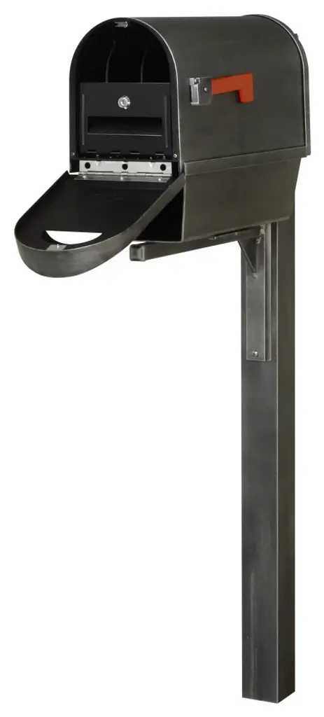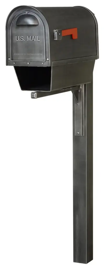 The traditional shape of our Classic curbside mailbox is the only thing this mailbox has in common with a typical curbside mailbox. The solid cast aluminum construction, with thicker walls than our competitors, provides added strength, and the powder coated finish will maintain a lifetime of beauty. Newspaper tube included.The traditional square mailbox post design with a decorative upgrade! Sturdy with clean lines theWellington post fits perfectly with any style of home architecture. Quick and easy direct burial will make assembly simple. No wood post needed! This is not a sleeve like many other companies use. This is a single 3" x 3" aluminum sturdy bodied post capped with a pyramid topper. The contemporary aluminummounting bracket easily attaches to the post. Made entirely of aluminum with stainless steel components to eliminate rusting. Direct burial installation is required.This mailbox combination also includes an easy to install locking insert, to help protect from identity theft. Manufactured from rust free powder coated aluminum, the Lock Box firmly attaches to the bottom of the mailbox and cannot be removed without the key. The Lock Box insert is easly installed with four screws (included). Consult your local postmaster regarding regulations governing the installation of locking inserts.