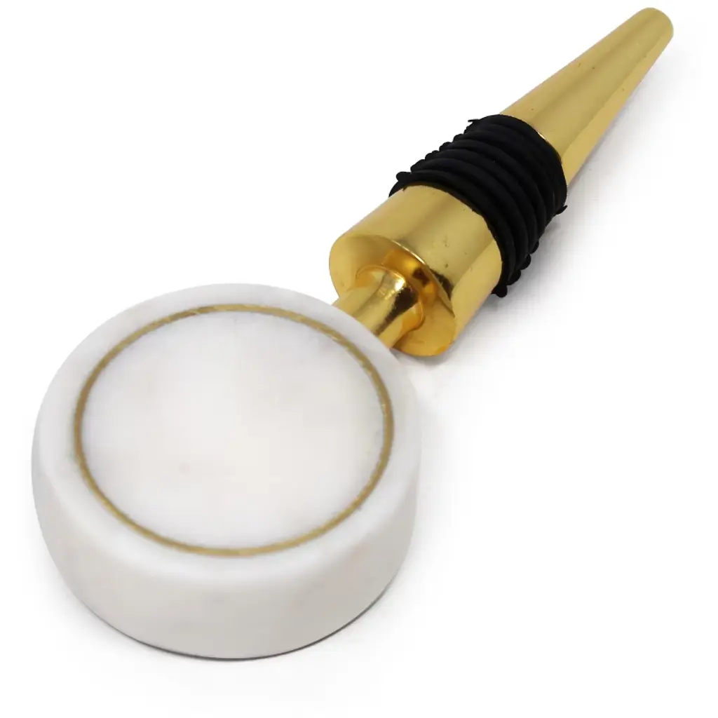 This bottle stopper, featuring a sleek white marble head, is the perfect accessory for preserving your favorite wines and spirits. With its sturdy construction and stylish design, it provides an airtight seal to keep your beverages fresh and flavorsome. Enhance your home bar experience with this elegant and functional addition.