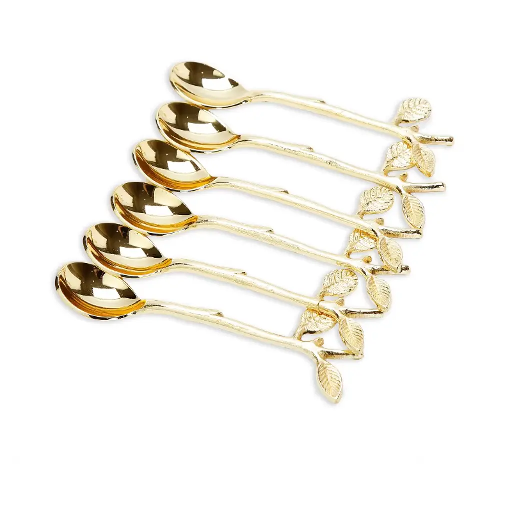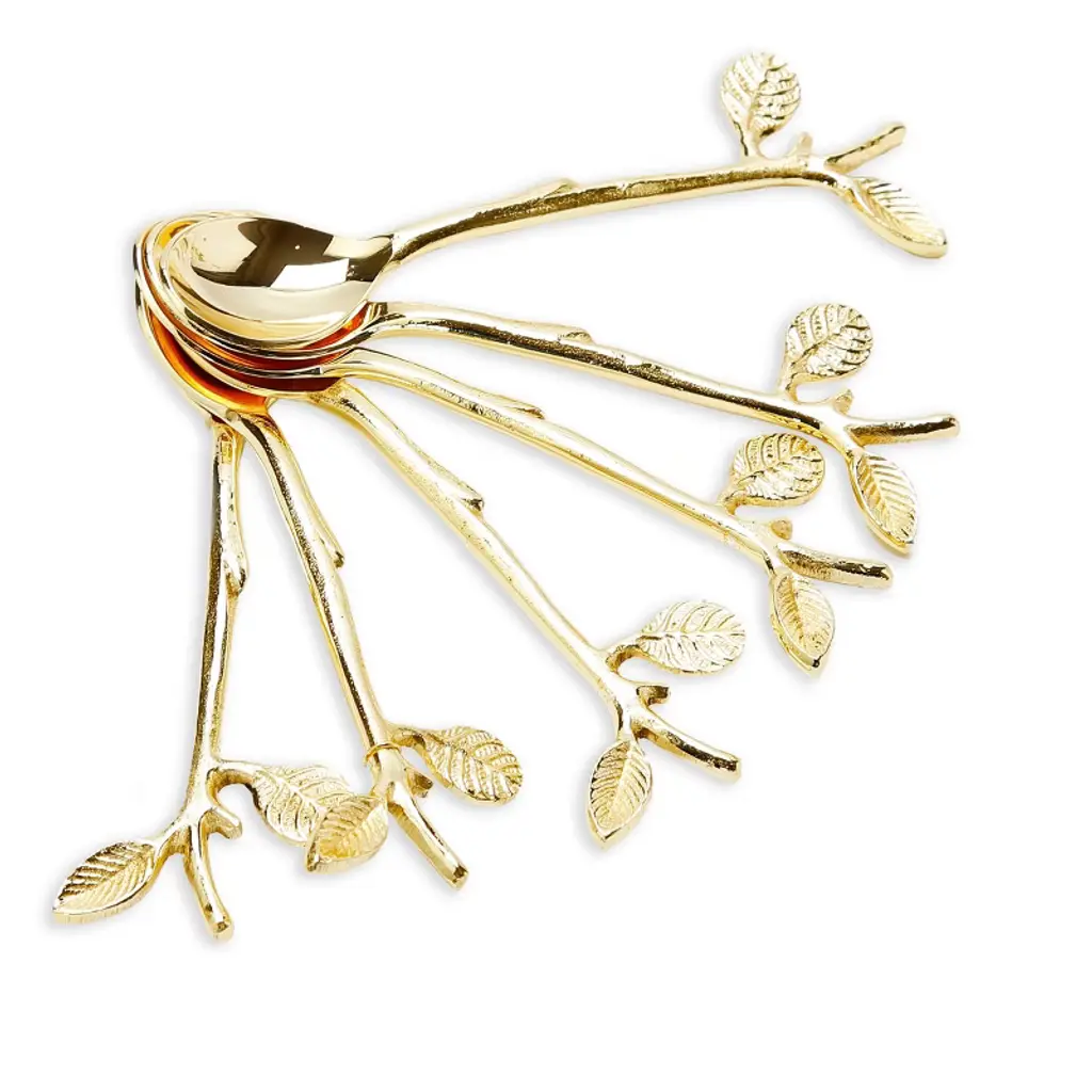 This beautiful set of 6 gold toned dessert spoons is a beautiful and elegant way to serve your favorite dessert. Its stunning swan holder will be a welcome addition to your dessert station.