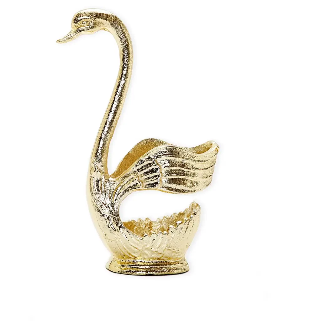 Classic Touch Gold Swan Dessert Spoon Holder With 6 Spoons