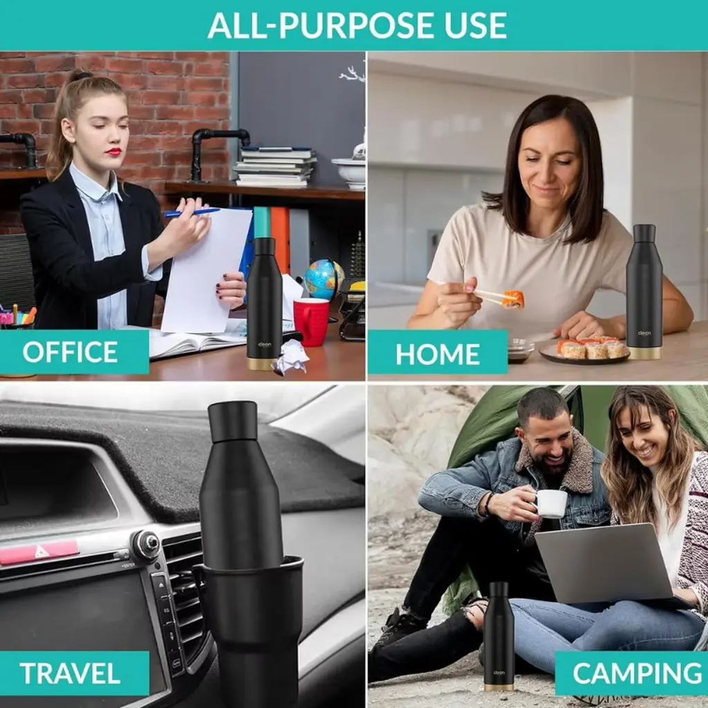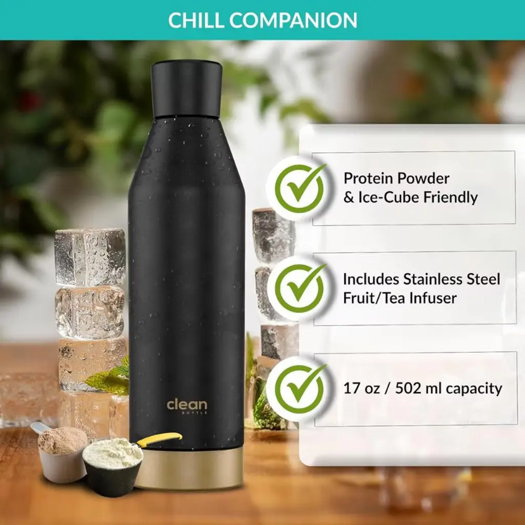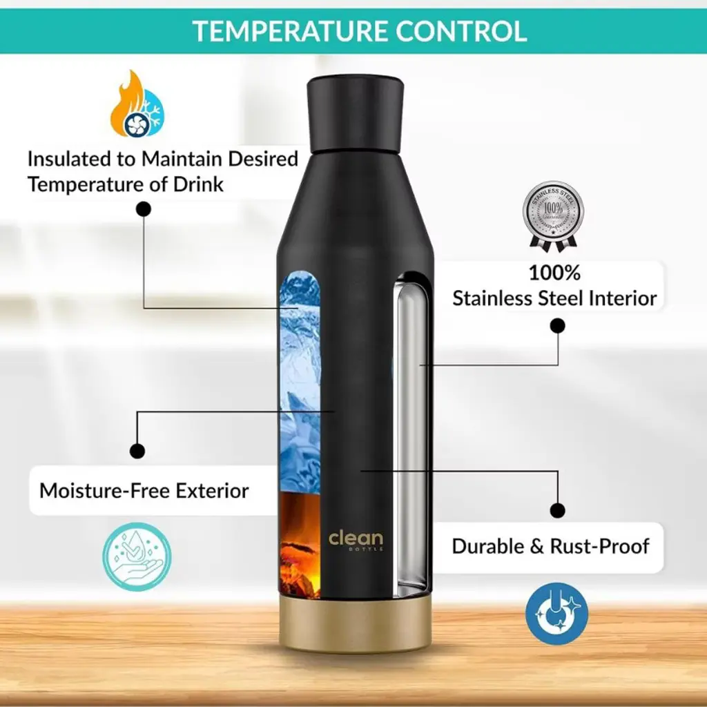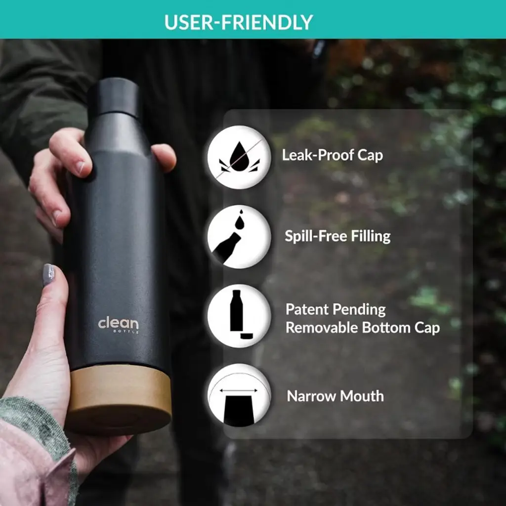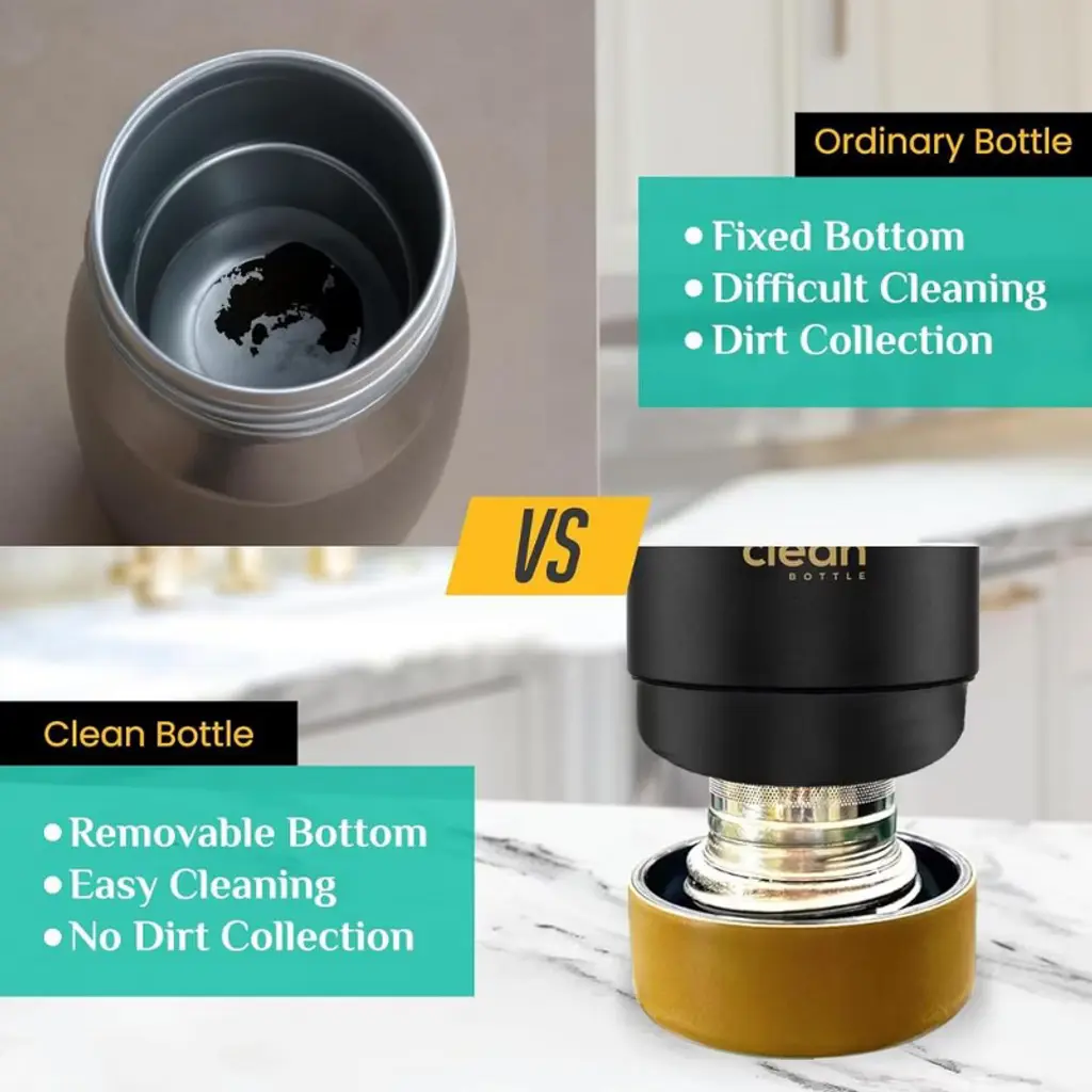 The Clean Bottle Canteen 17 is an insulated stainless steel water bottle designed for everyday use. It features a removable bottom that makes cleaning quick and easy. The double wall insulation helps keep drinks at a steady temperature, whether hot or cold. With a sleek black finish, this bottle is practical for travel, office, gym, or outdoor activities. Its simple design makes it easy to carry and fits well in bags or cup holders.