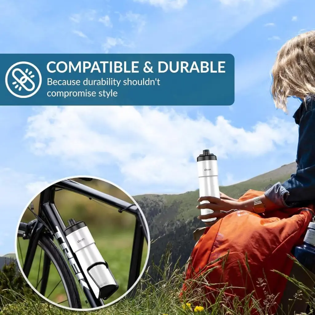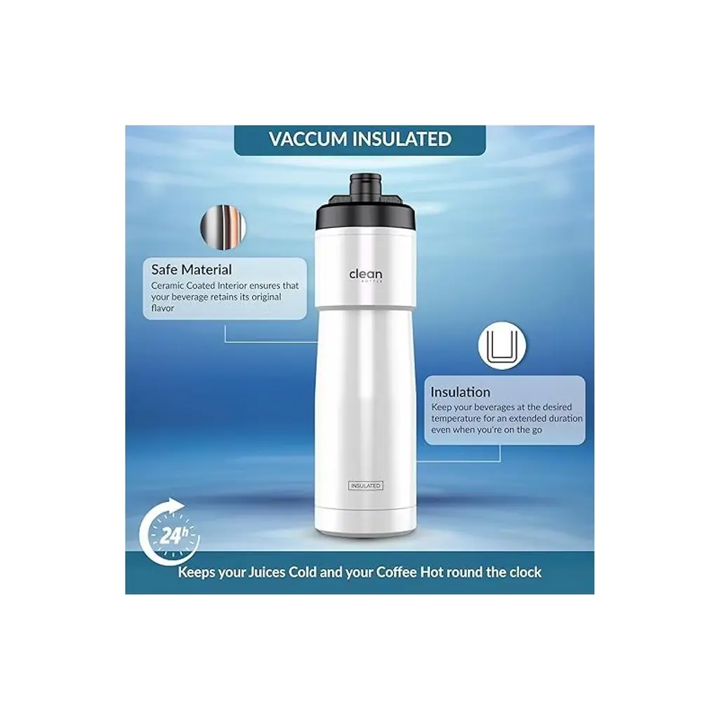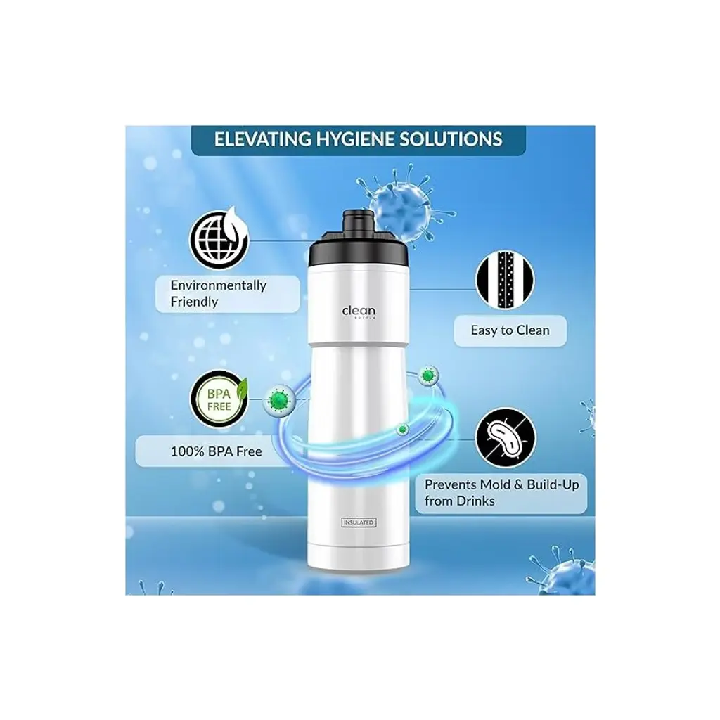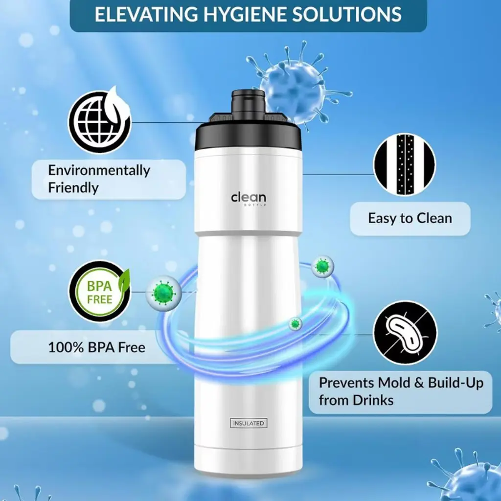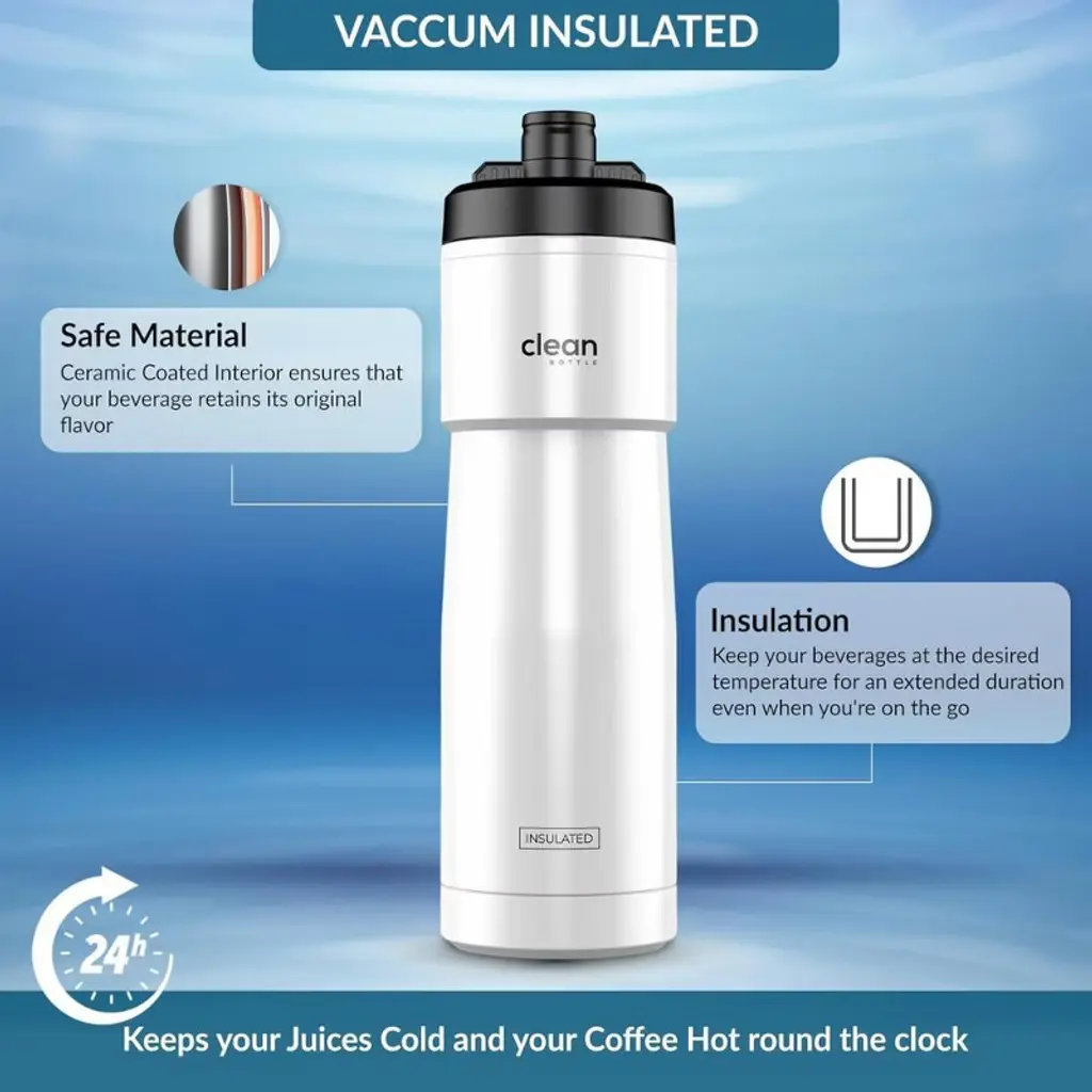 Clean Bottle Sport 23 Insulated Bike Water Bottle With Easy Clean Cap And Easy Squeeze Design, White