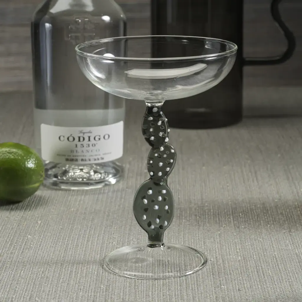 Elevate your cocktail experience with the Climbing Cacti Tequila Cocktail Glasses. Featuring a classic clear-finish coupe bowl, these glasses stand out with a cactus-inspired stem in vibrant hues, accented by delicate white dot detailing. The clear, flat round base ensures stability, making them perfect for serving tequila-based cocktails, margaritas, or your favorite mixed drinks. A stylish fusion of modern elegance and Southwestern charm, these glasses bring a unique and playful touch to any barware collection.