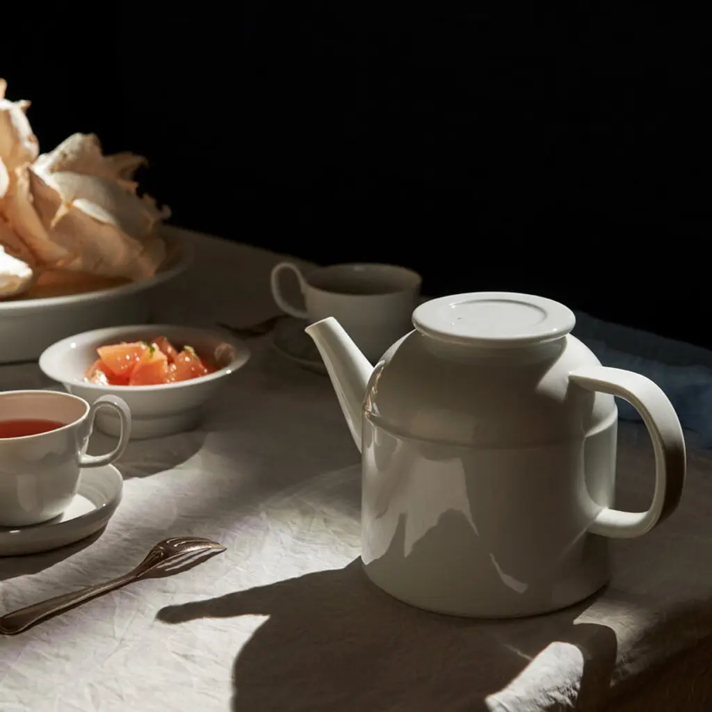 CMA European teapot by 1616 / arita japan keeps guests pleased even at larger tea parties – the beautifully simple pan holds up to 1.5 liters of tea, coffee and your other favorite beverages. The teapot's minimalist and timeless design language makes it perfect for both day-to-day use and festive occasions. Designed by Cecilie Manz, the breathtakingly delicate collection includes cups, mugs and teapots that combine beautifully with each other and with other tableware. The CMA dinnerware is made from a mixed clay containing Amakusa pottery stone that has a large amount of iron deposits. This means that the shapes and colors of the dishes may vary slightly from pot to pot, making each piece unique. As a reference to the material used, the CMA collection is also known by the name "Clay".