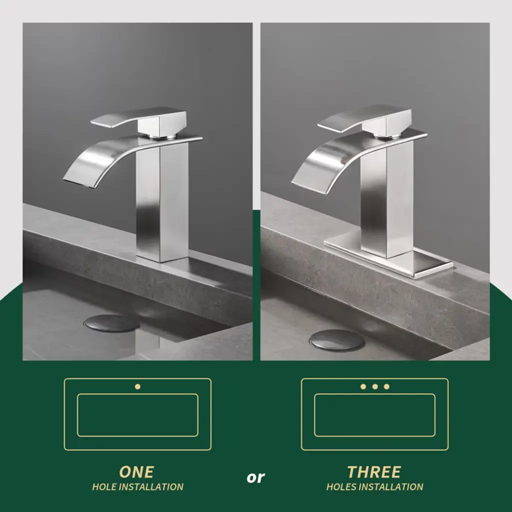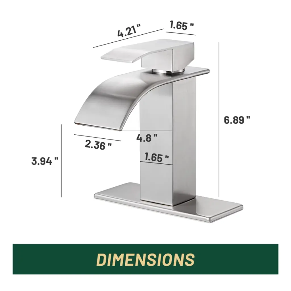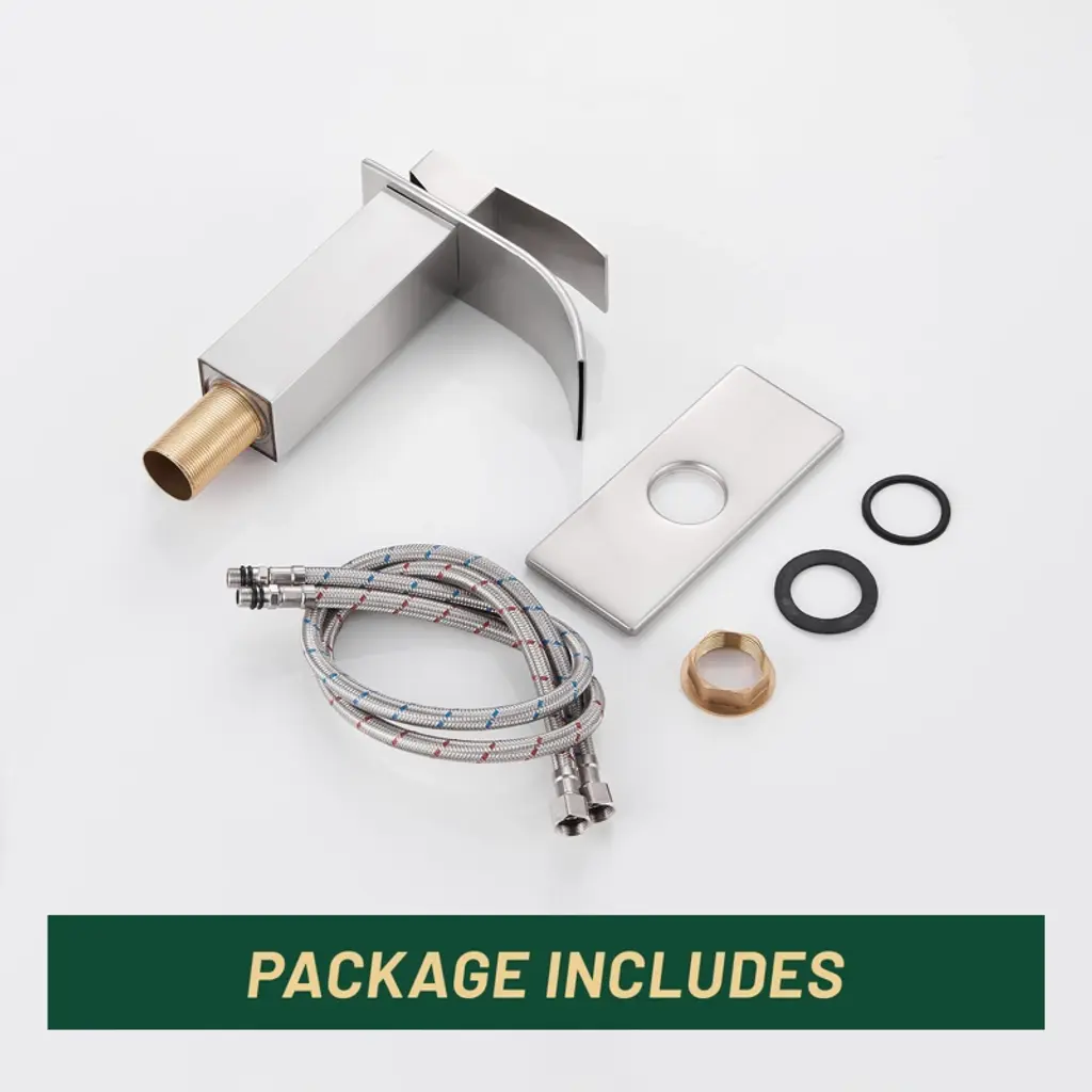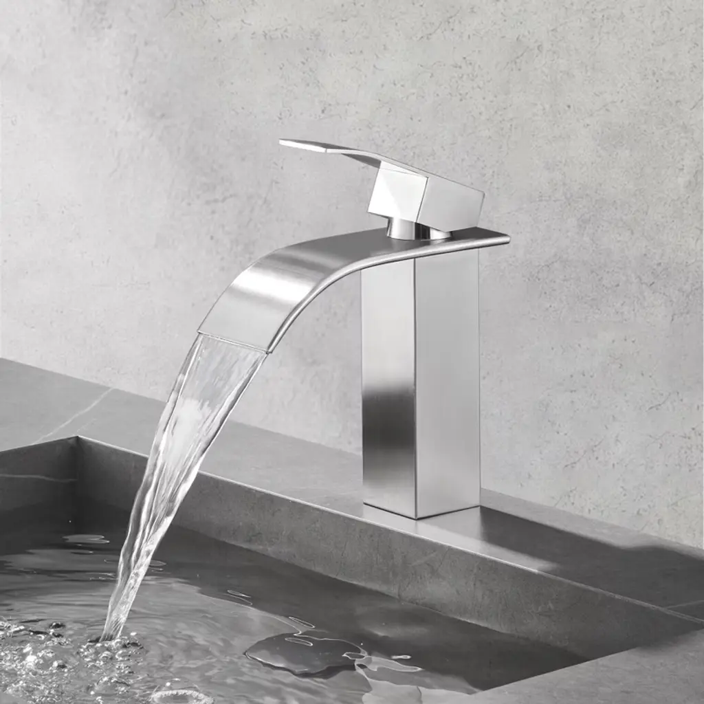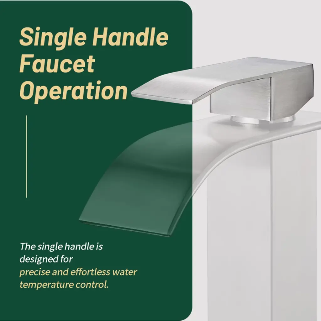 The waterfall spout provides a clear and steady laminar stream and creates a unique look for your bathroom. Inspired by pure geometric style, this faucet has a minimalist yet stylish look. A single lever handle allows for easy adjustment of water temperature and starting/stopping the flow of water. Controlling water volume and temperature with just one handle is easy for everyone to use. Crafted from high-quality stainless steel, this faucet boasts a non-drip ceramic valve cartridge, ensuring both safety and durability. The waterfall spout provides a clear and steady cascading flow of water, presenting a beautiful water feature. The single handle design makes it easier to adjust the water temperature and can be controlled with one hand. Our bathroom faucet surface undergoes a special treatment to resist corrosion, peeling and discoloration, a simple wipe with a damp cloth restores its clear and immaculate appearance, adding a touch of sophistication to your bathroom. Get peace of mind with our two-year warranty and installation instructions, ensuring a hassle-free experience.
