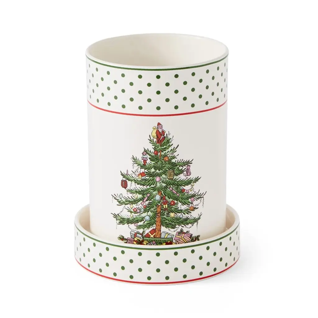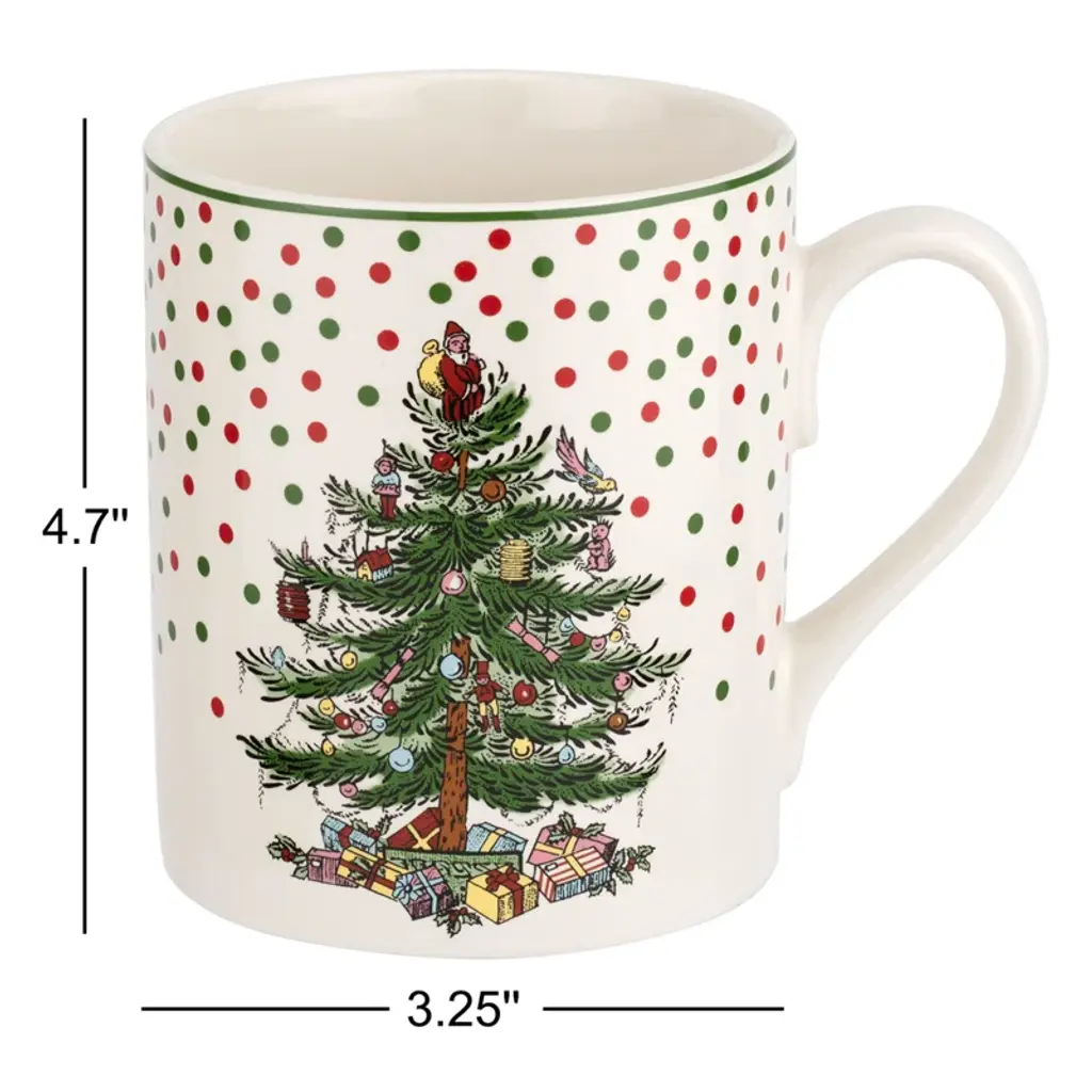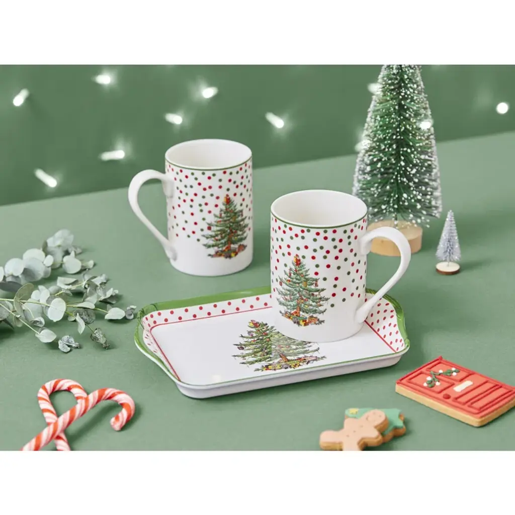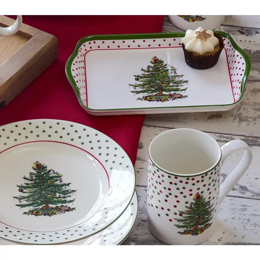 It features a playful polka dot border surrounding our iconic Christmas Tree. A whimsical dessert set to add cheer to the holidays. Perfect for a steamy mug of tea or hot toddies.