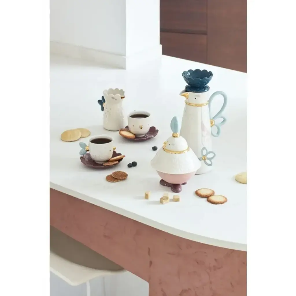 Porcelain coffee pot from the Kawki collection designed by Aleksandra Zeromska, a charming coffee set inspired by Slavic folklore and a love for birds. An iconic Spanish brand, Lladro is a world leader in the creation of porcelain art. Started by brothers Juan, Jose and Vicente Lladro in 1953, the ceramic figurines were initially inspired by the works of great European manufacturers like Meissen and Sevres. Over time, a unique style was forged, consisting of elongated lines, a revolutionary single-firing method, and soft pastel tones.