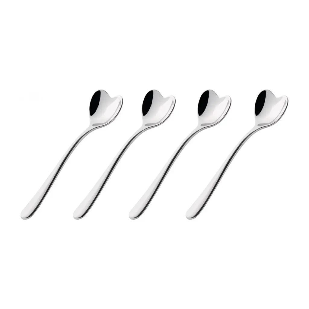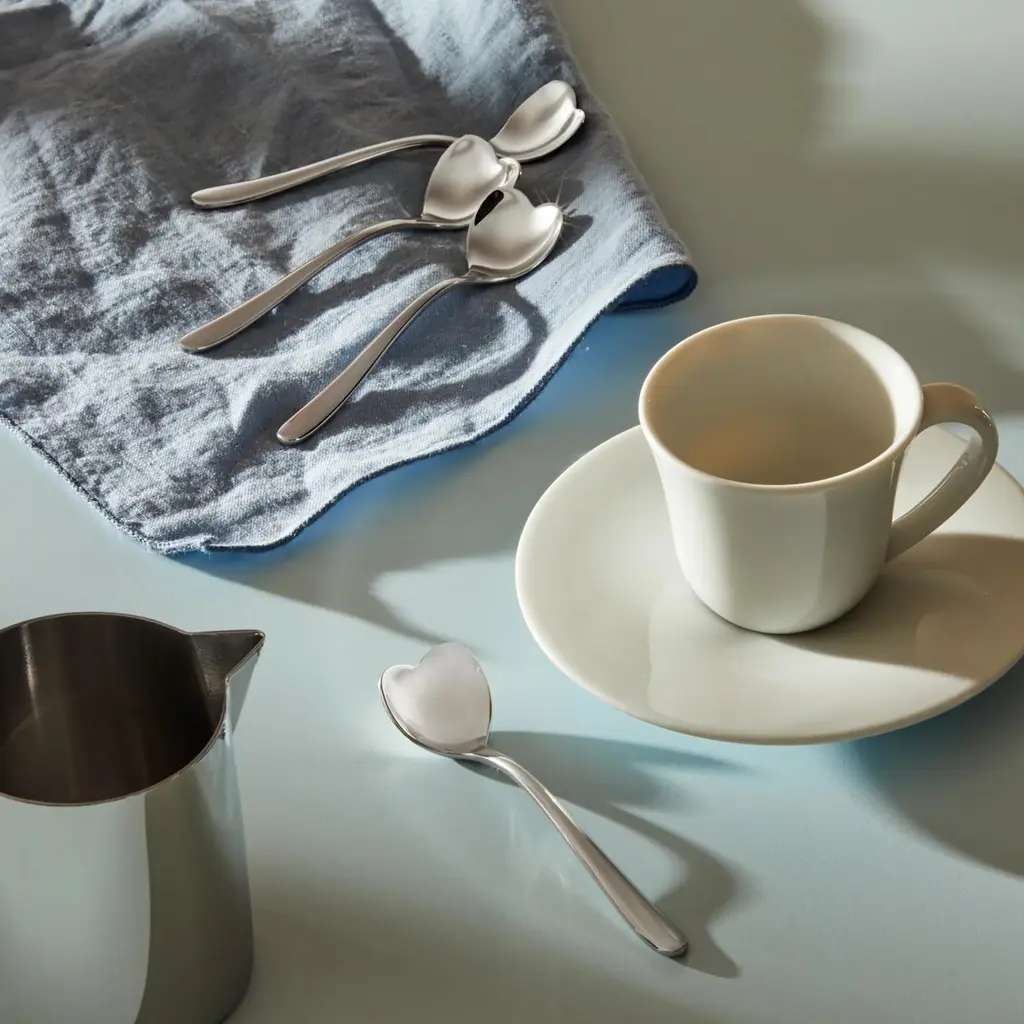 Add a sprinkle of love to your coffee or tea serving rituals with the Alessi Coffee Spoons. Created by Italian designer Miriam Mirri, these spoons are part of the Big Love series that takes inspiration from the universal symbol of love, the heart. Unlike classic spoons, they are heart-shaped to bring a playful twist to any coffee serving set. An elegantly curved handle completes the design. Made from high-quality 18/10 stainless steel, the Alessi Coffee Spoons feature a polished finish that beautifully reflects the light. This set comes with 4 spoons.