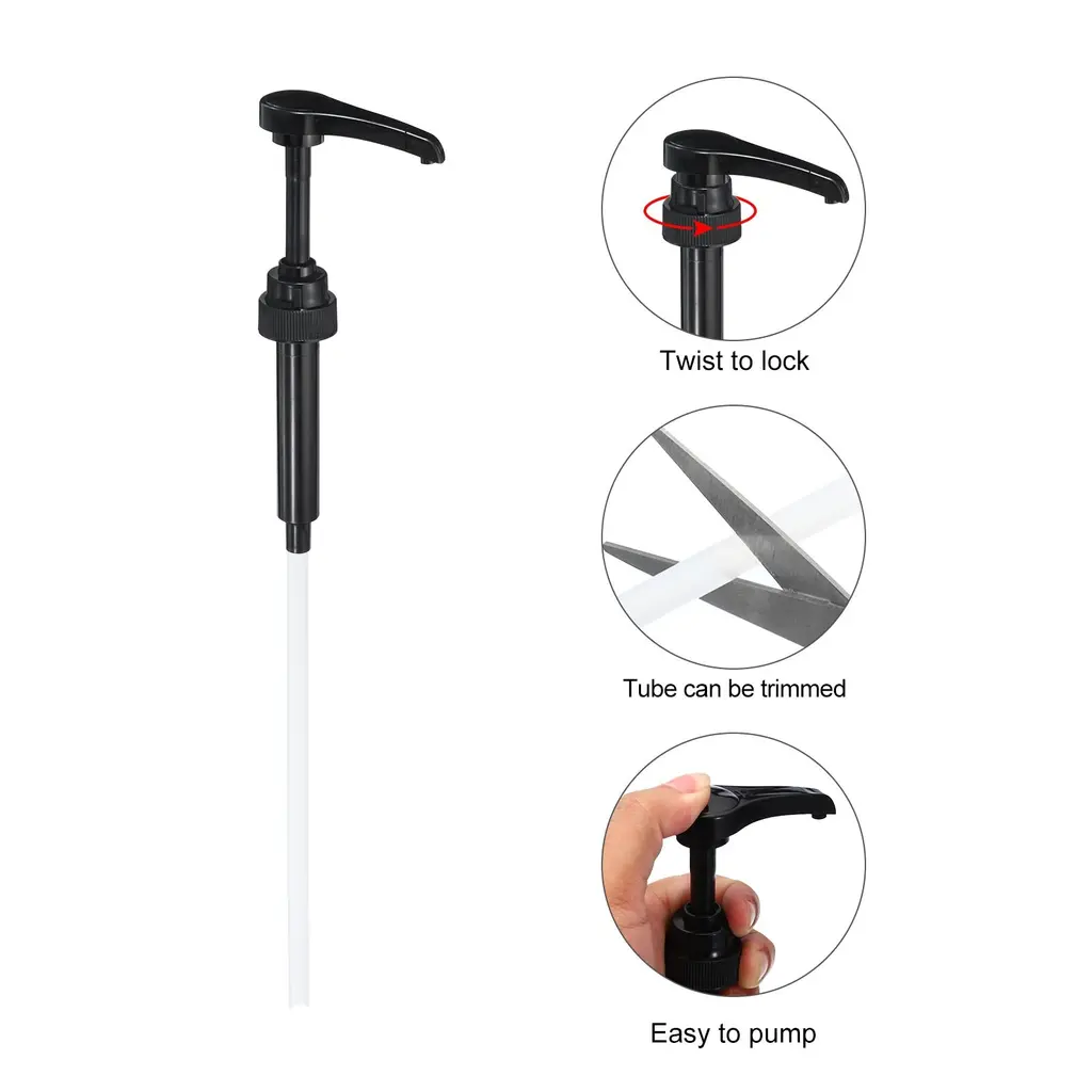 Syrup pumps are widely used at home, coffee bars, soda bars, or self-serve condiment stations.Specification:Material: PPColor: BlackSize: 38 cm(L) x 7.5 cm(W)/ 15 inch x 3 inchPackage Included: 6pcs x Syrup PumpAdvantage:Our coffee syrup pumps are made of PP material, sturdy, durable, direct contact with food liquid, and safe to use.Simply place the pump on top of your coffee syrup and press the trigger to dispense the syrup into your cup.The length of the dip tube can extend to the bottom of the bottle, making sure the syrup remains at the bottom.The syrup pump is designed to fit a variety of bottles, preventing dripping, leakage, and other spills.They will help you make a cup of delicious tea, coffee, cocktails, soda, snow cones, and so on.Note: Please allow 1-2 mm differences due to manual measurement. Due to the difference between different monitors, picture may not reflect the actual color of the item