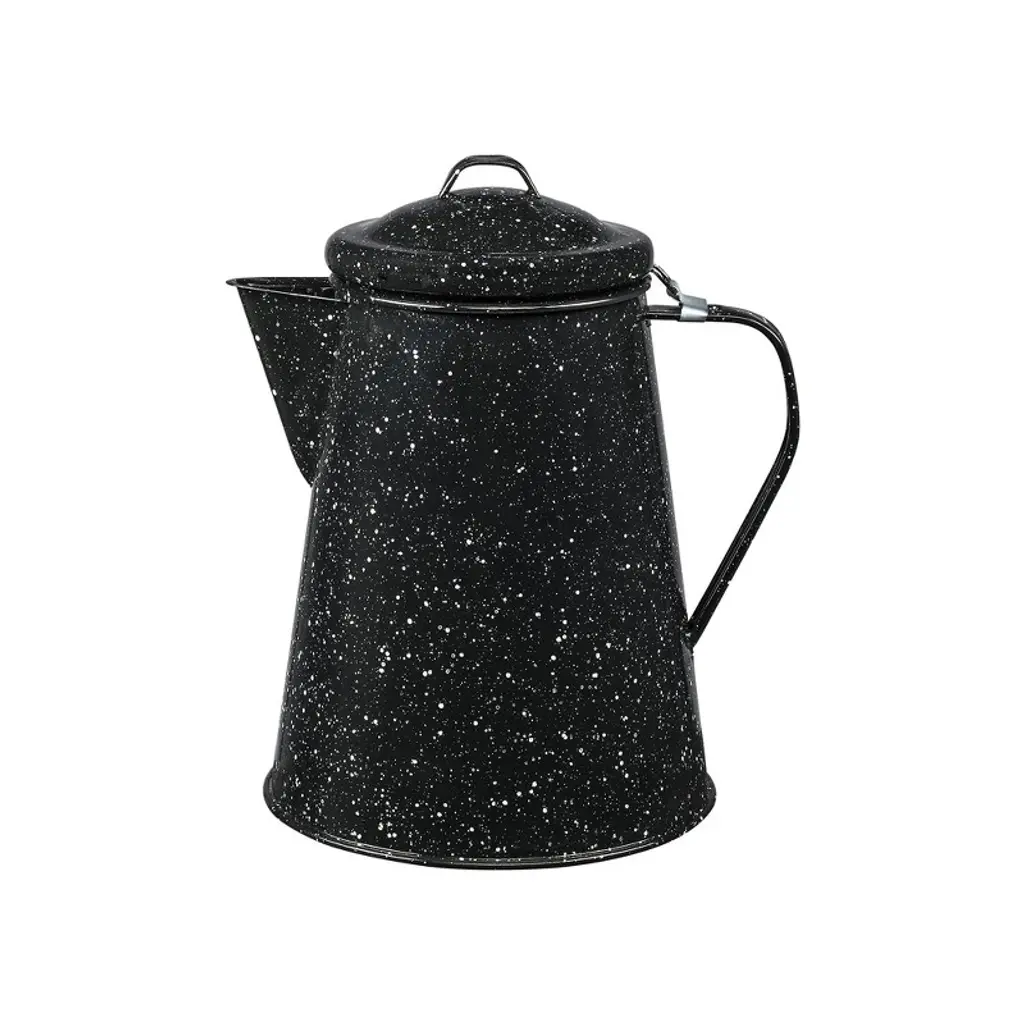 Great for camping, the lightweight Coghlan's 9-Cup Aluminum Coffee Pot is made of durable, rust-proof, and polished aluminum. It features a percolator stem with basket and dual, quick-cool bail handles on the top and side making for a safe, steady pour. This coffee pot heats quickly and is easy to clean.