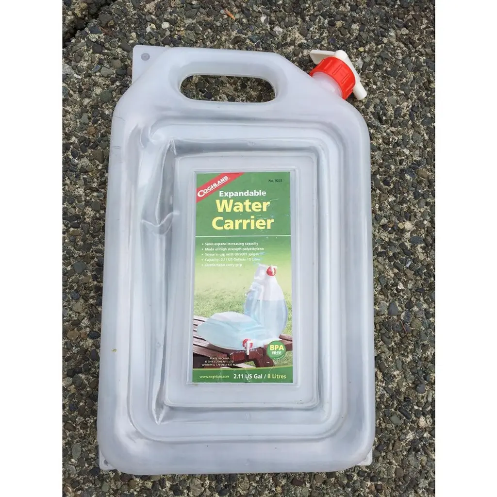 Coghlan's Expandable Water Carrier has a capacity of 2 gallons and features an on/off spigot, screw-on cap and comfortable carry handle. Made of strong polyethylene, it expands as needed and collapses for easy storage and travel. This water carrier is the perfect accessory for you next camping trip! Sides expand for increasing capacity. BPA Free. Size: 9 3/4" x 16" 2 1/4".