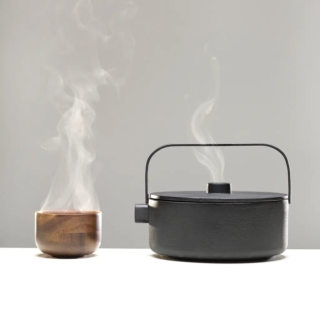 Make every tea brewing ritual special with this cast iron teapot with infuser from Serax. Designed by Brent Neve and Giel Dedeurwaerder, the duo behind collaborative Utilise.objects., the Collage Teapot celebrates Japanese tradition via contemporary design. It features a blend of simple aesthetics and skillful craftsmanship to look gorgeous for years to come. The cast iron teapot with infuser has a recess on the lid to allow the aromatic scents of tea to fill the room. Made of cast iron, it features a matte finish on the exterior and a glossy enamel surface on the interior. A slender handle adds an elegant accent to the design while making it easy to move the teapot from the stove to the kitchen table. As convenient as it is beautiful, the Collage Teapot is suitable to use with any heat source. Please keep in mind that cast iron is not safe to use in the microwave.