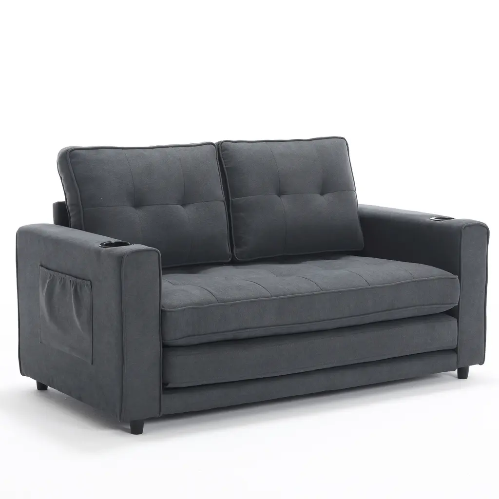 ▷Rest with the best in the comfort of your family and friends. We welcome you to try out our new Grandera furniture collection in order to achieve the most optimal quality possible. Fashion and function coalesce for optimal versatility, making this furniture suitable for any space and existing decor. The classy clean-lined upholstery is Itharailable in a rich color palette for every type of aesthetic. ▷FASHIONABLY CONVENIENT: With one swift motion, transform this Loveseat into a sleeper that measures in at 47.2" x 44.7" or utilize the included storage compartments for your very own storage needs. ASSEMBLY made easy in 30 minutes or less! DISCLAIMER: ITEMS IN IMAGES SOLD SEPARATELY ▷SUITABLE FOR SMALLER SPACES: The perfect size for functionality in a studio apartment, dorm room, and even in the living room of a home! Enjoy the practicality of a full sized Loveseat without dealing with any additional unnecessary bulk. Utilize our click-click technology in order to turn this Loveseat into a bed with one swift move, thus changing your living room into a guest room. *REFER TO THE IMAGES FOR DETAILED & ACCURATE Loveseat MEASUREMENTS* ▷QUALITY CRAFTED: Quality crafted in Turkey with only the finest materials. This Loveseat is manufactured with quality Chenille for the seating area. Accompanied by four sturdy legs that help the Loveseat hold a WEIGHT CAPACITY OF 600 LBS. ▷COMFORT & DESIGN: Our upholstered Loveseat consists of thick, firm seat cushions for optimal comfort and style. Enjoy sitting high in comfort on our quality firm Chenille seating cushions. Develop your desired aesthetic environment with the included matching pillows for your Loveseat. ▷CLEANING INSTRUCTIONS: Spot clean impacted areas before any extensive cleaning is applied. Use a dry cloth with a mild amount of soap and water for any further extensive cleaning options. Please avoid any harsh chemicals in order to prevent any unnecessary discoloring. *ITEMS PICTURED ARE SOLD SEPARATELY* ▷MEMORIES: Enjoy sports events with close friends, appreciate quality time in the comfort of your family, or snooze on the couch while watching your favorite show.