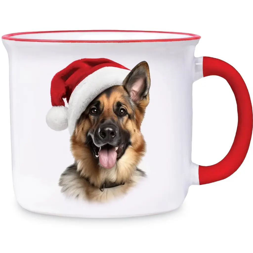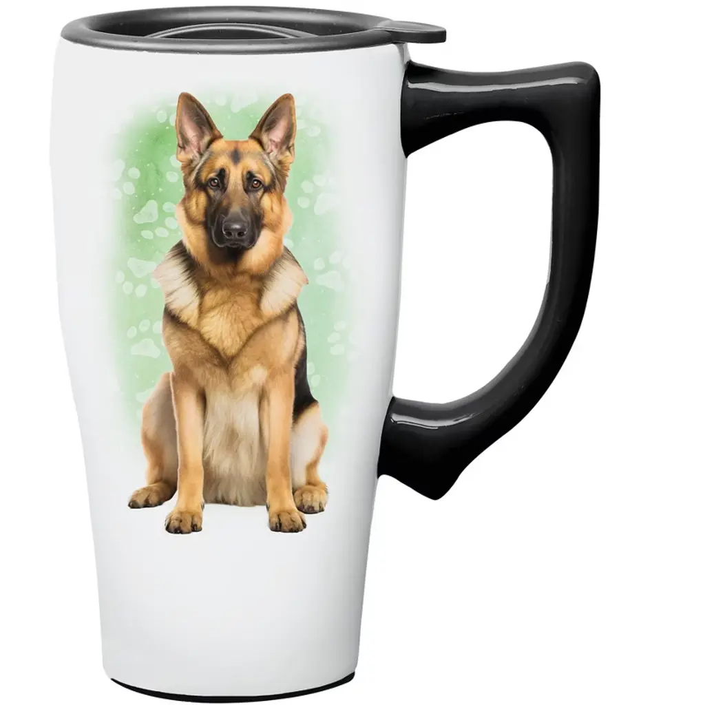 Collections Etc Dog 18 Oz. Ceramic Dishwasher Safe Travel Mug German Shepherd Blue