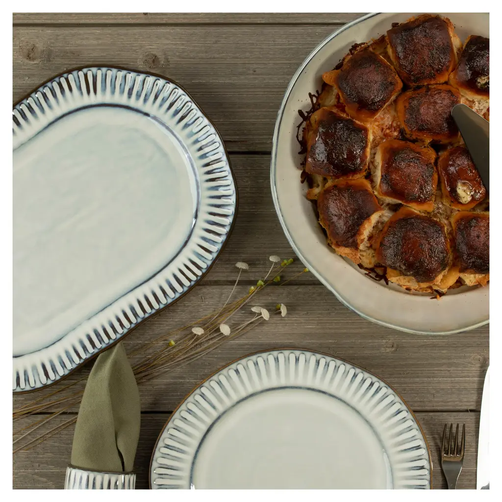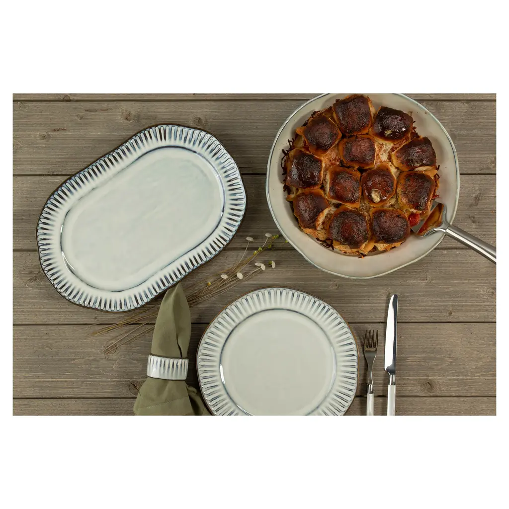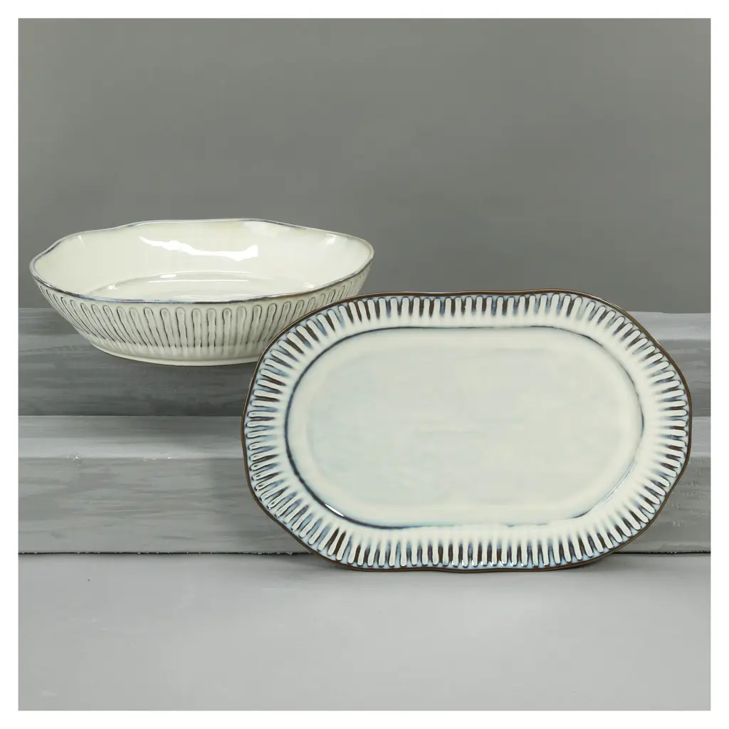 Inspired by the grandeur of the Greek Parthenon, the BIA Cordon Bleu Stoneware Colonnade Serving Set brings a touch of ancient architecture to your table. This 2-piece set includes a 14" oblong platter and a 12" serving bowl, both crafted from black clay and finished with a high-fire reactive glaze for a unique, artisanal look. The sleek lines and organic rim design pay homage to the enduring beauty of classical Greece, making each piece a conversation starter. Oven, microwave, and dishwasher safe, this set is as functional as it is stylish. Elevate your dining experience with the Colonnade Serving Set. BIA Cordon Bleu: Designed With Modern Sensibility For Wherever You Live, However You Cook, And Whenever You Entertain.