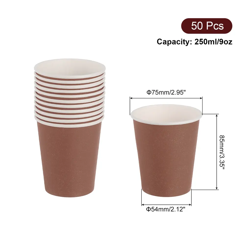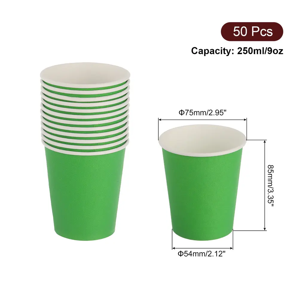 [Disposable and Convenient]: Made of thick paper, sturdy and durable and not easy to fade, after the party, just throw them away for quick and easy cleanup.[DIY Paper Cups]: Our disposable paper cups are perfect for DIY tools and sports stacking cups, let your paint or decorate these paper cups with favorite colors and designs, unleash their creativity.[ Party Cups]: Use these colorful paper cups to make your birthday party or any special occasion extra special, you can complete this craft with your family and friends, giving you the opportunity to connect with your family and friends and enjoy a happy time together.[Wide Range of Uses]: These cups can be used not only for parties, but also for daily activities such as tea parties, picnics, and even art and craft projects, the possibilities of these versatile cups are endless.Specification:Capacity: 250ml/9ozHeight: 85mm/3.35"Bottom: 54mm/2.12"Diameter: 75mm/2.95"Material: PaperColor: RedPackage Contents: 50 Pcs x Disposable Paper Cups