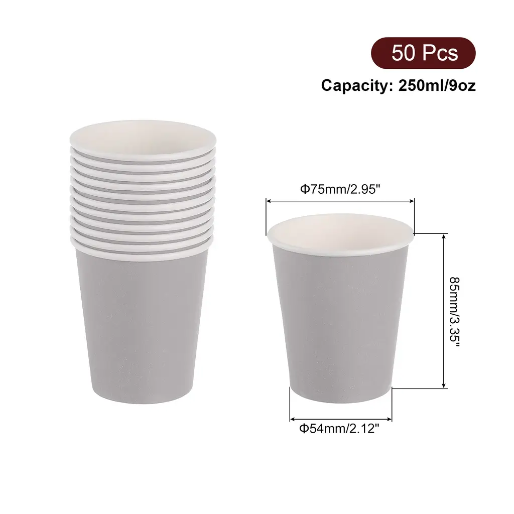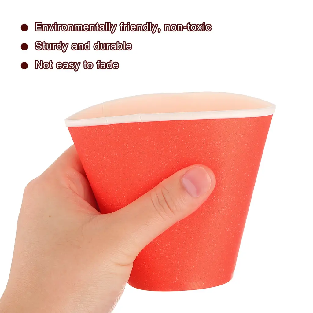 [Disposable and Convenient]: Made of thick paper, sturdy and durable and not easy to fade, after the party, just throw them away for quick and easy cleanup.[DIY Paper Cups]: Our disposable paper cups are perfect for DIY tools and sports stacking cups, let your paint or decorate these paper cups with favorite colors and designs, unleash their creativity.[ Party Cups]: Use these colorful paper cups to make your birthday party or any special occasion extra special, you can complete this craft with your family and friends, giving you the opportunity to connect with your family and friends and enjoy a happy time together.[Wide Range of Uses]: These cups can be used not only for parties, but also for daily activities such as tea parties, picnics, and even art and craft projects, the possibilities of these versatile cups are endless.Specification:Capacity: 250ml/9ozHeight: 85mm/3.35"Bottom: 54mm/2.12"Diameter: 75mm/2.95"Material: PaperColor: RedPackage Contents: 50 Pcs x Disposable Paper Cups