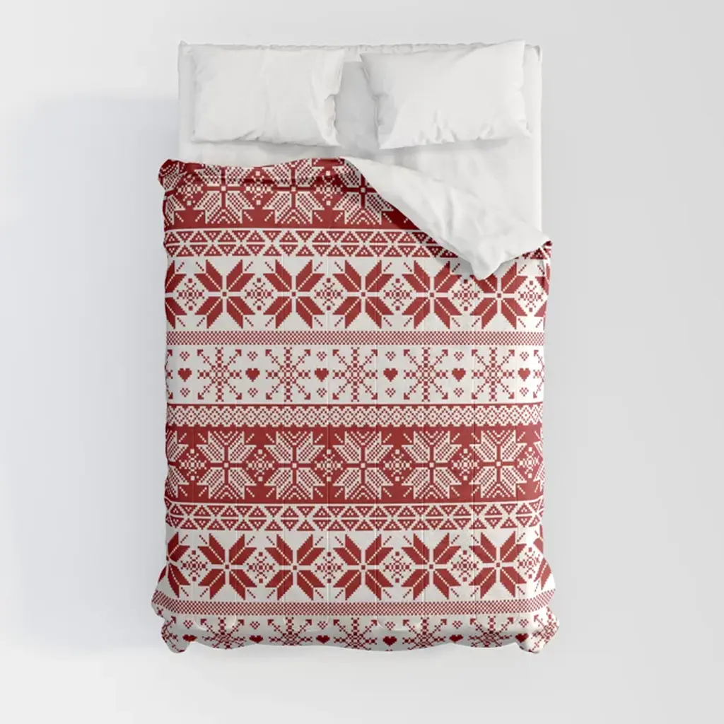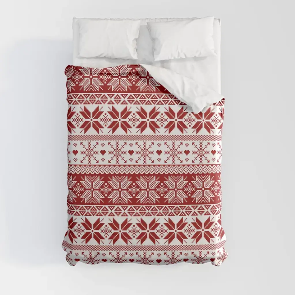 Designed to finish the look of the Comet and Cupid bedding collection, these euro shams are also useful as an extra layer to lean back on while you read or watch television. Each euro sham is sized at (26x26in.) and features an intricate red pattern layered carefully with various shapes and lines, on a white ground. They come as a set of 2, pre-filled with a polyester inner. Extremely versatile, they can also be used alone to give any bed a little spot of sophistication, or a bit of holiday cheer.